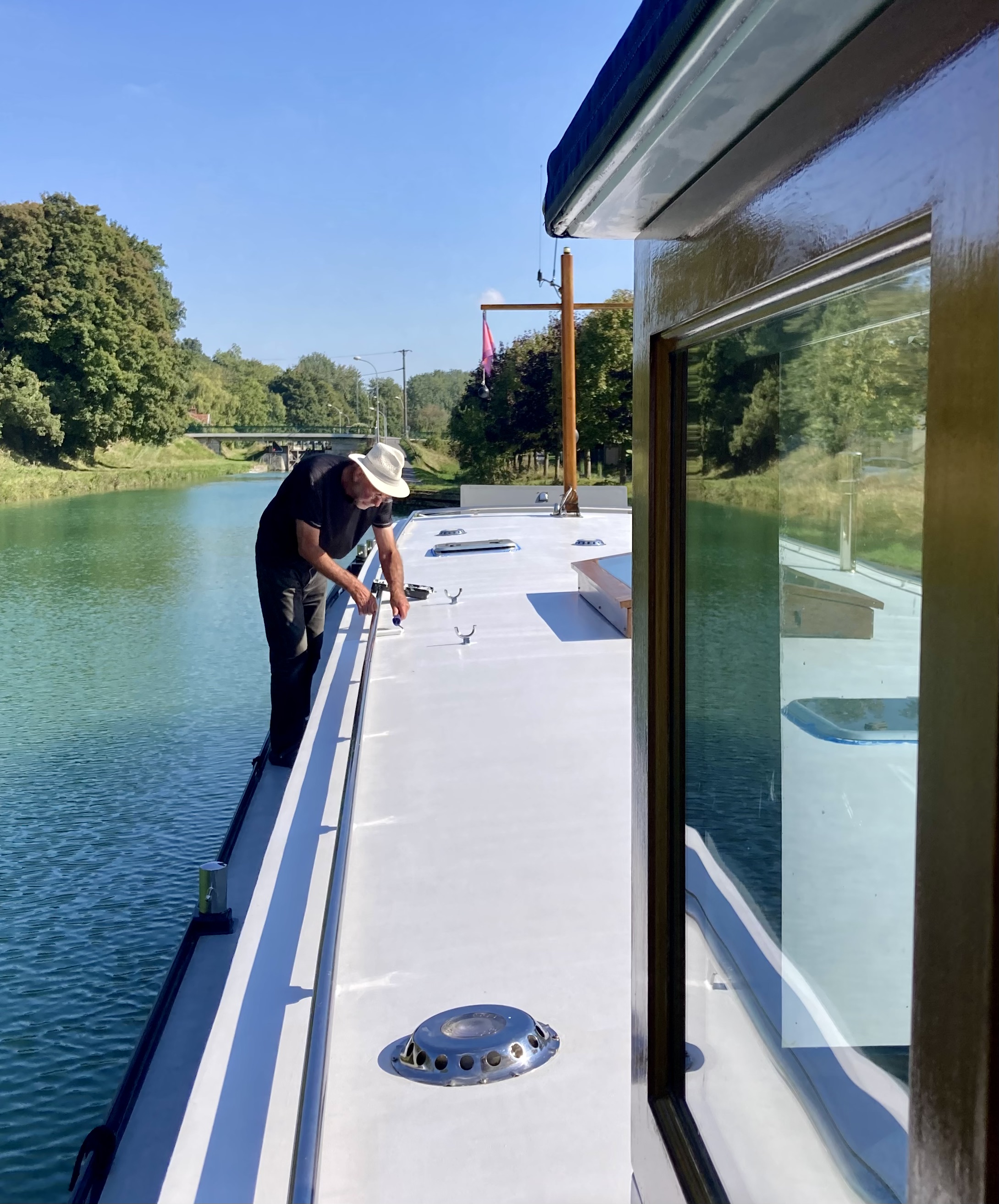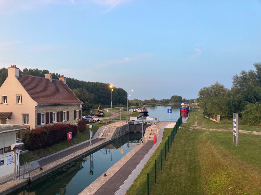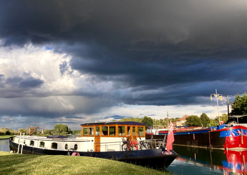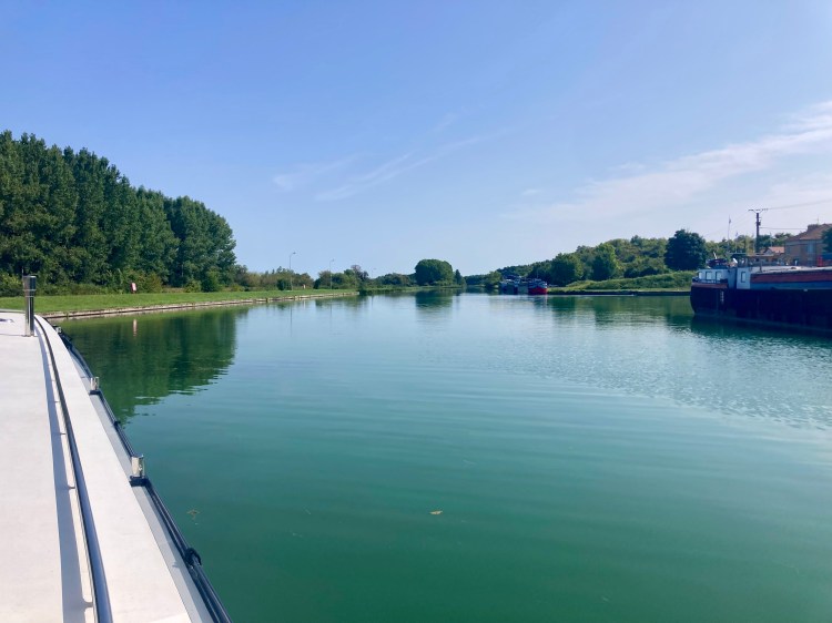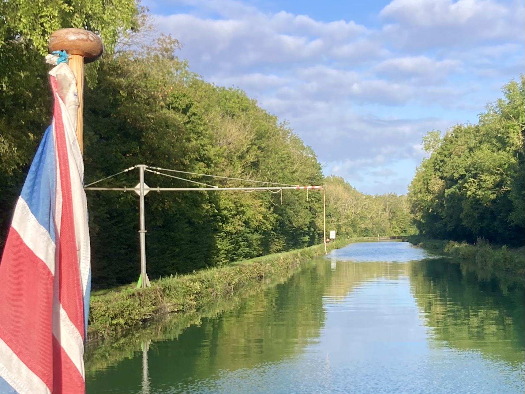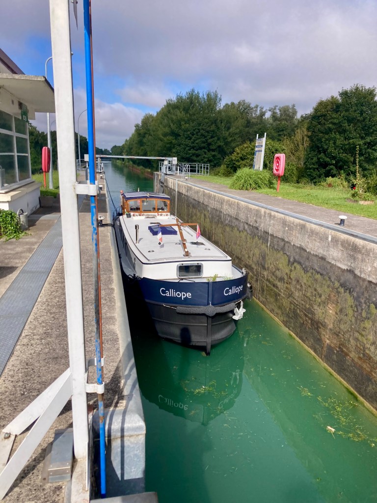 We arrived at the northern end of the canal from the Canal Lateral à La Marne with additional crew on board. Our son had come to help us put in some long days south after a 5 week hold up on the Canal L’Aisne à La Marne; a lock was undergoing modernisation.