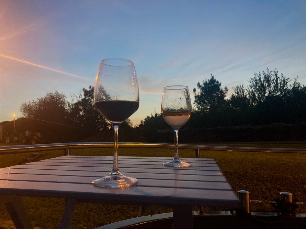 The other main ‘living spaces’ are the wheelhouse, with its dining table, and the back deck, with its chairs and, for us, glasses of rosé at sundown.