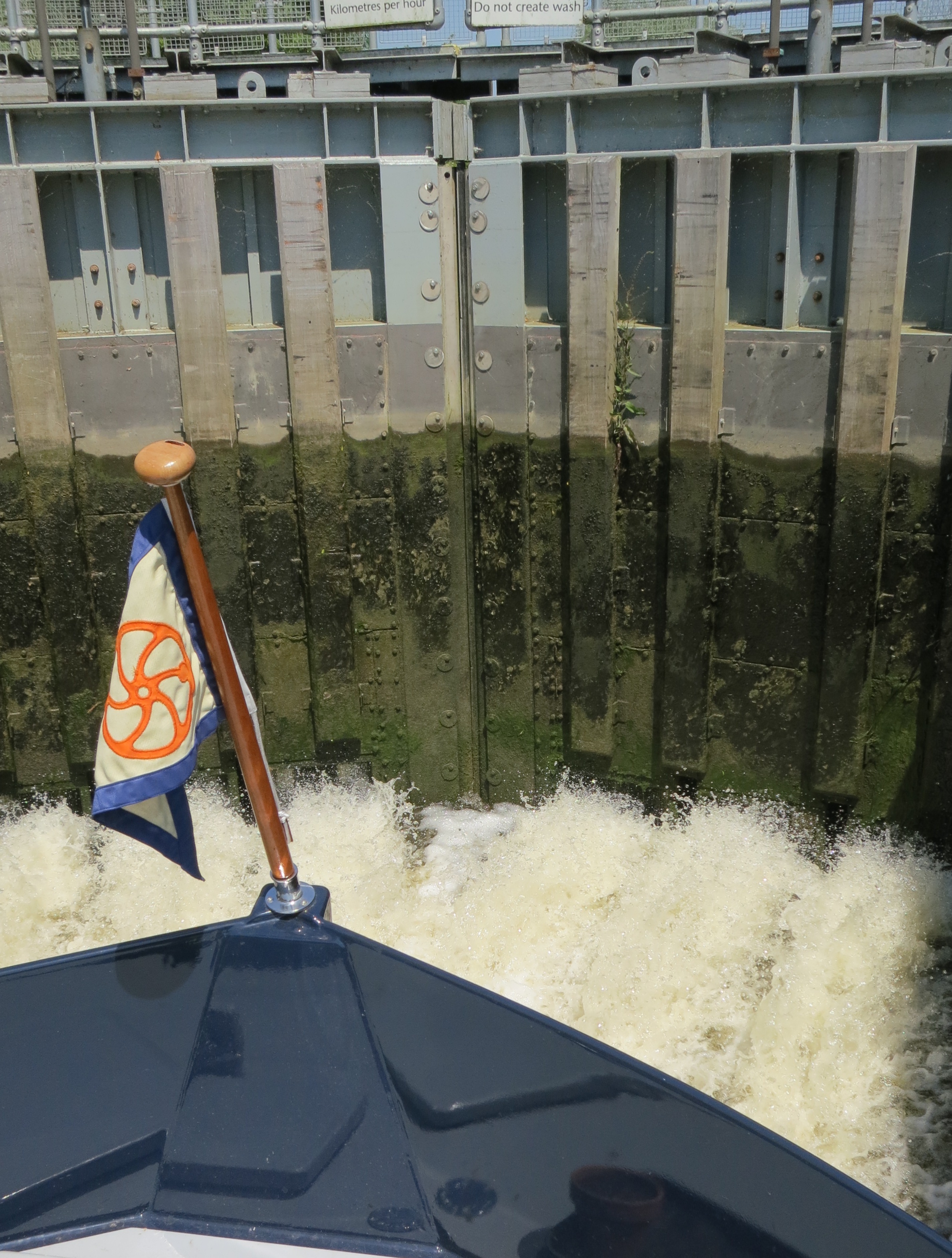 …. until we float to the top of the lock and gently move out onto the next reach of the Thames.
