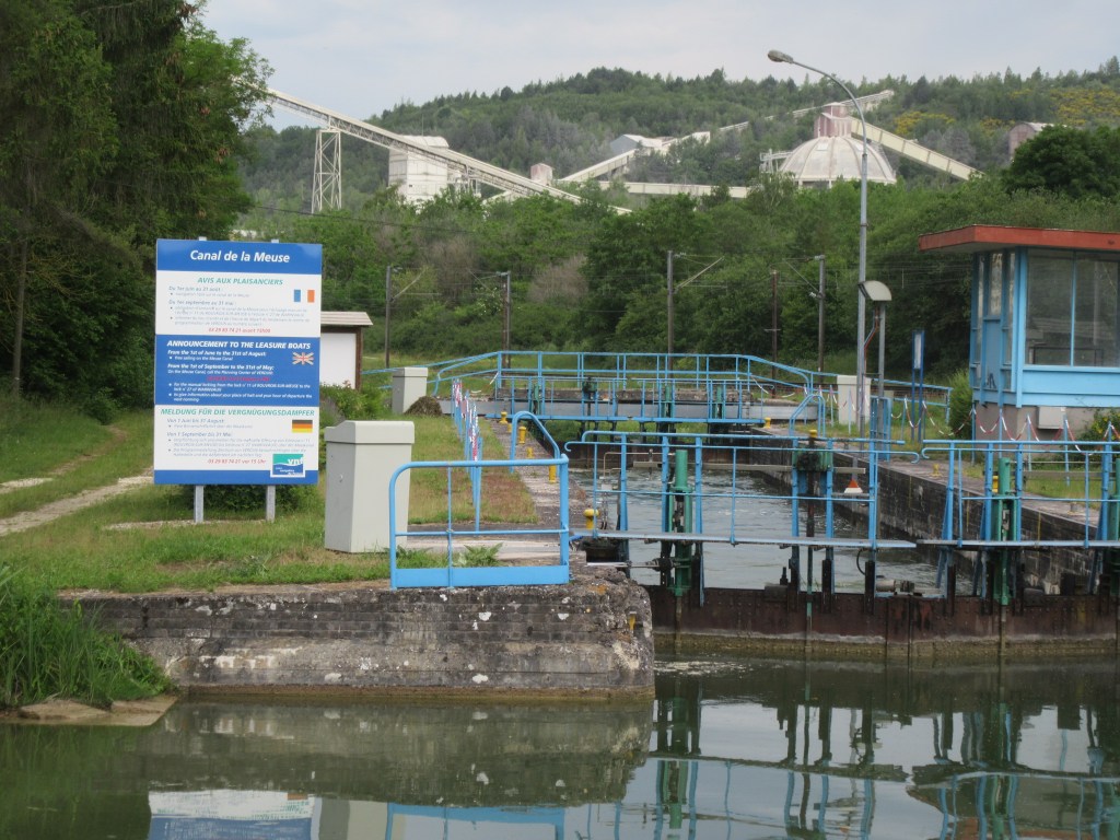 And immediately our first lock was upon us, opened by our nice new yellow zapper. We could see close by a huge cement factory that appeared to utilise stone and/or chalk from close by quarries.
