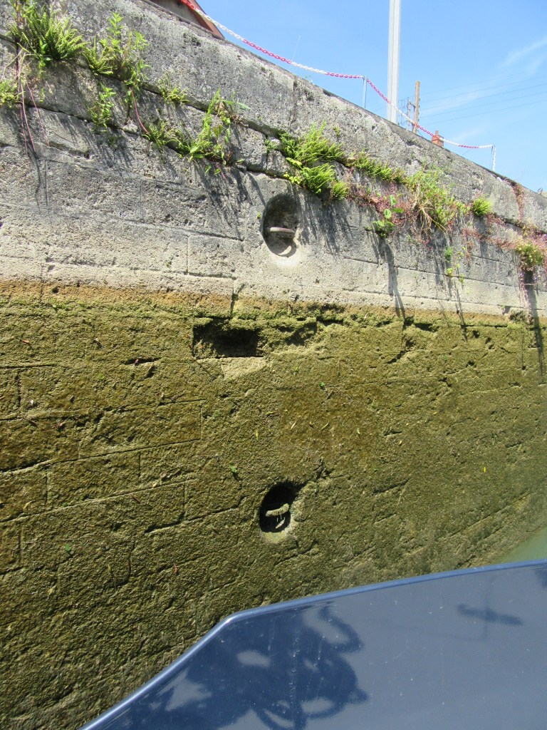 We have become used to bollards inset into the walls of deep locks so that you can move your ropes up (or down) as you go. On this canal there were a few alternatives to the inset bollard. There have been crosses, half-rings, bars and the good old sliding pole, but much broader than before.