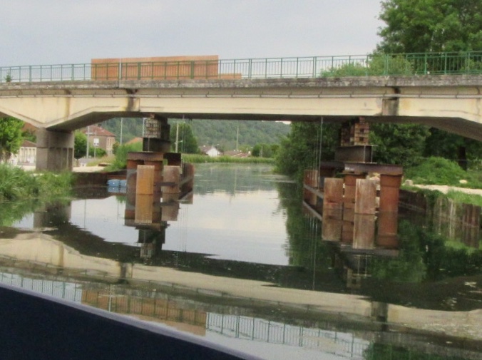 We left Void, still on the Canal de La Marne au Rhin, first thing, passing under the bridge that was closed the day before, and which clearly still has more work to be done.
