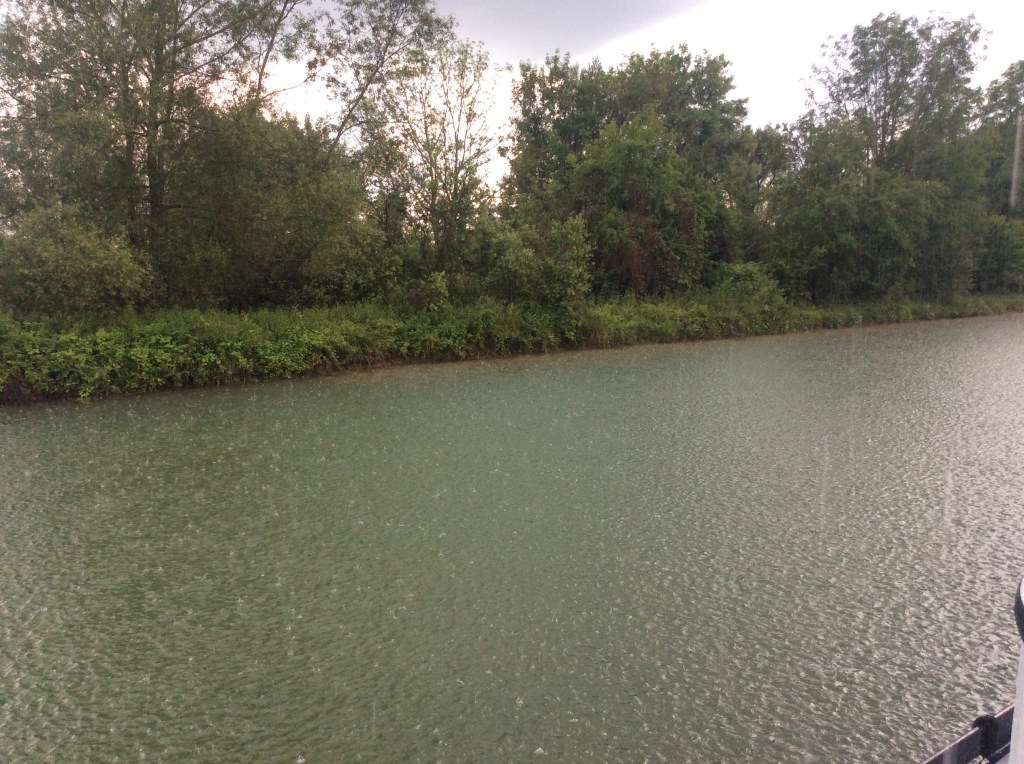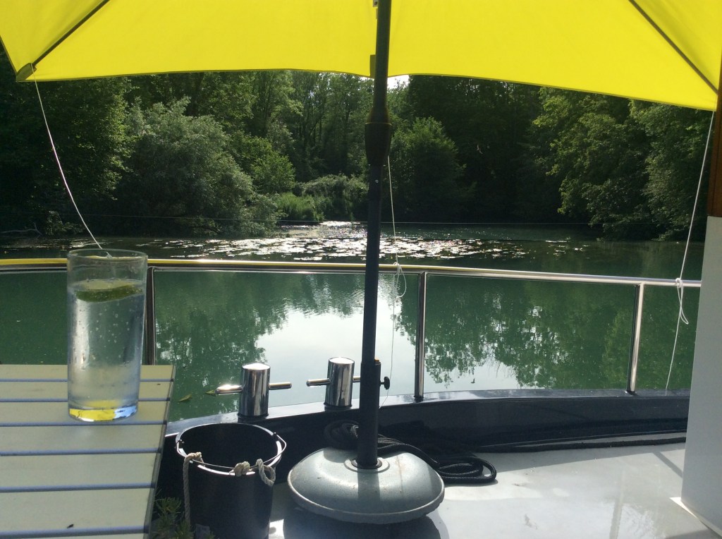 When we moored up just before Ramilly-Aillicourt lock we were once again very hot – about 34 degrees in the wheelhouse even with the windscreen down and a reasonable breeze blowing in.