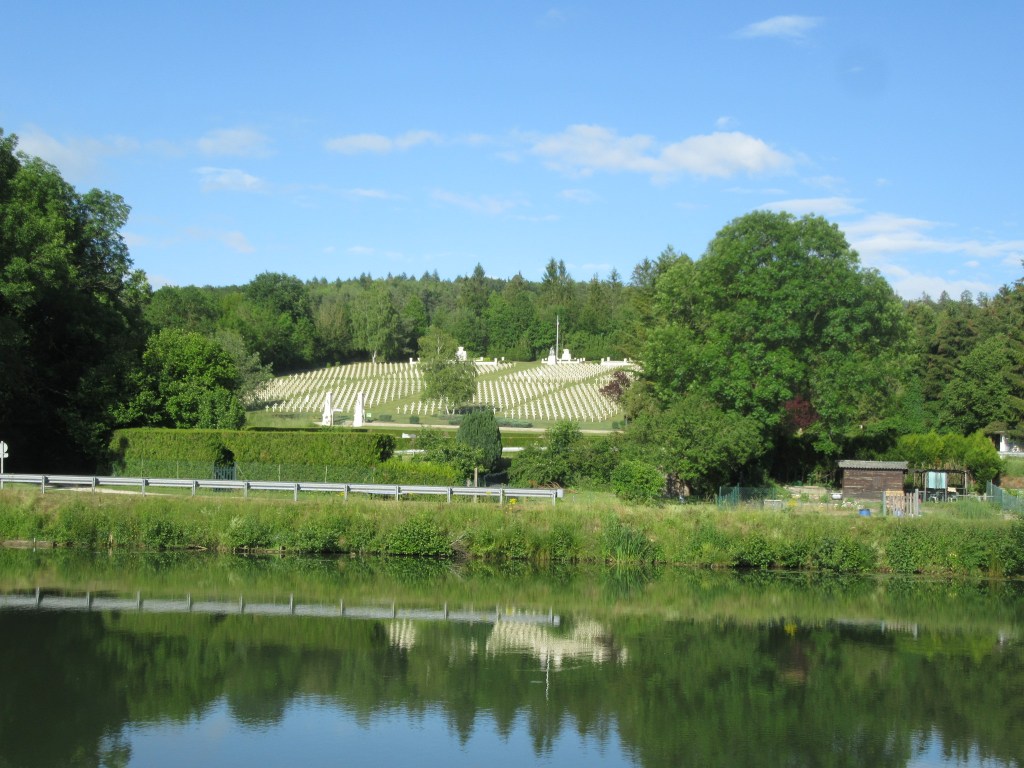 It is now Sunday and a morning visit to the boulangerie for a baguette is essential as they all tend to close at noon. With bread safely aboard we carried on our journey on another glorious day, and with countryside stretching to either side. The only sadness in all of this was knowing how this same countryside and surrounding hills were the scene of the Battle of Verdun during WW1.