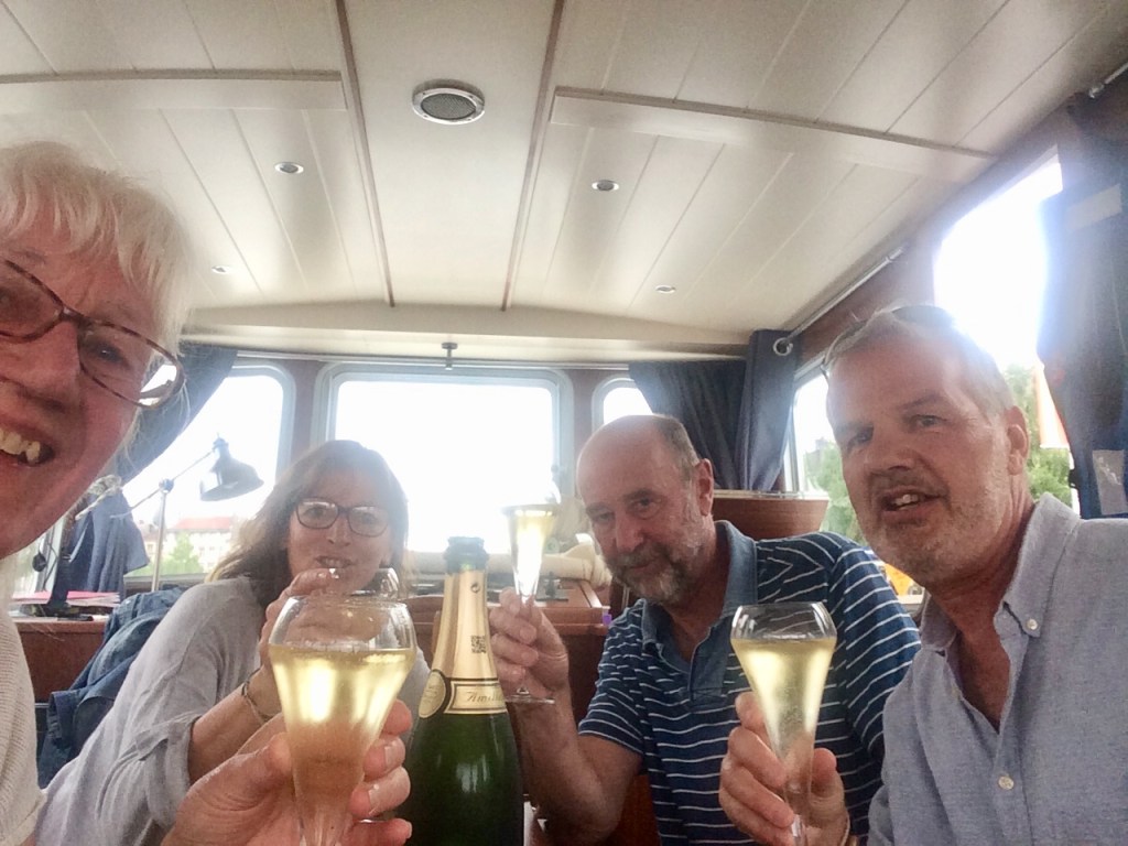 After a good bit of Piper boat, waterways, and general barge conversation we were treated to a glass of absolutely delicious champagne – very special because it is only made with white grapes. We also heard of an imminent heatwave set to sweep across Europe, including France, in a few days time.