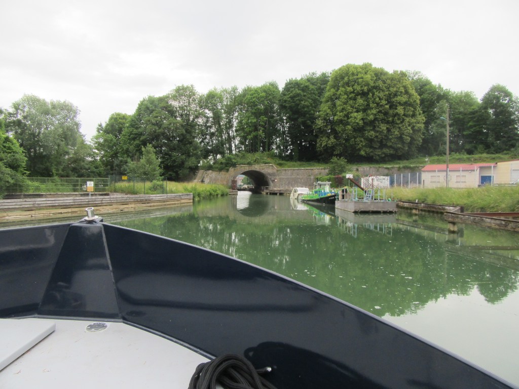 Next day was Saturday and we were heading to Verdun. The river was lovely along the way, plain easy sailing, and by 11am we arrived at the interesting tunnel through the fortifications built around the city by Vauban in the 17th century. The tunnel leads immediately to the lock down into the town.