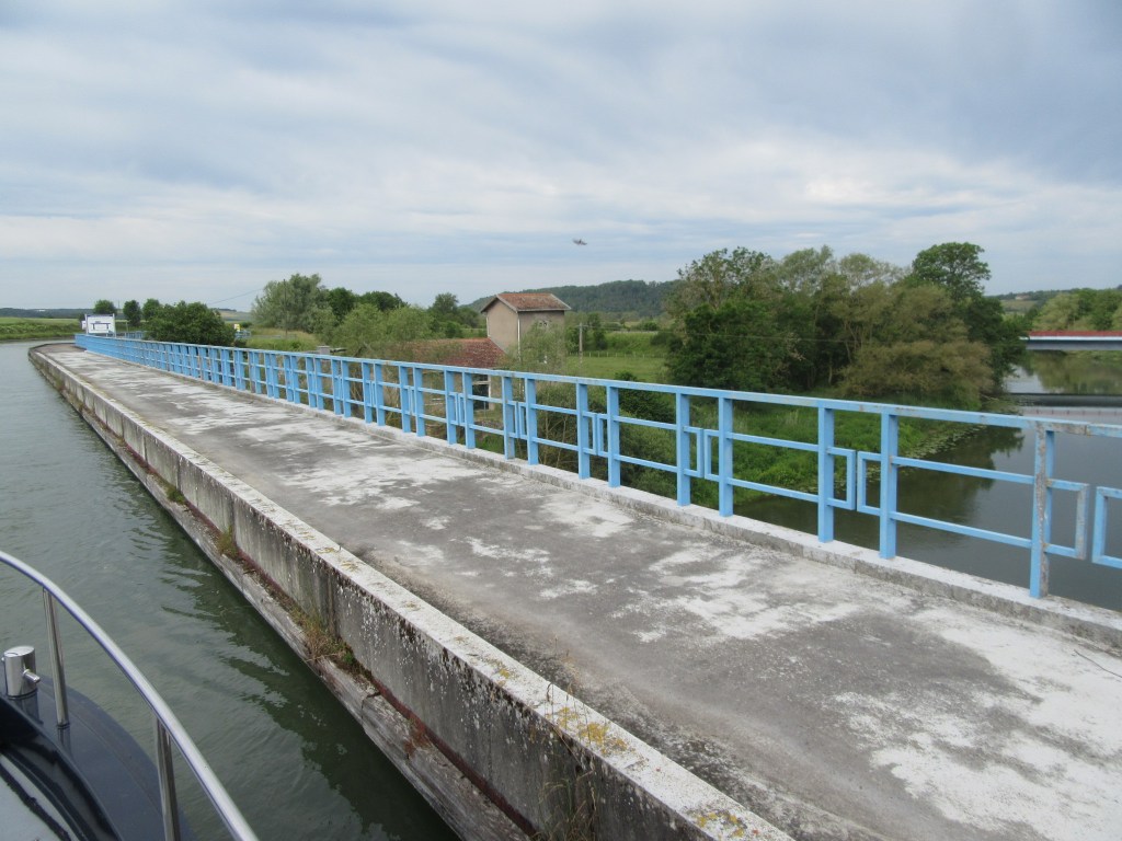 After a sort stretch we found ourselves on a short aqueduct over a river (was it La Meuse) before needing to take a share left hand turn onto our new canal. I rather liked the geometric Art Deco style of the aqueduct railings.