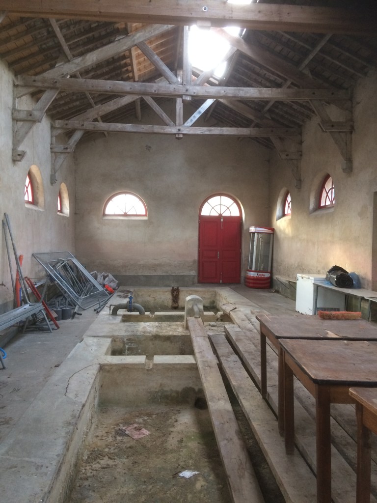 Later, in the evening, I went for a second walk and this time saw a van pull up by the building so I used my best school girl French to ask about the building. On hearing that it had indeed been a lavoir, built after the war, I asked to see inside. It is now a village store, but it is clear that this was a very modern lavoir compared to many I have seen. And interesting to me that in 1919, when my grandmothers were in their twenties, a lavoir was still considered to be the way to wash ones clothes in rural France.