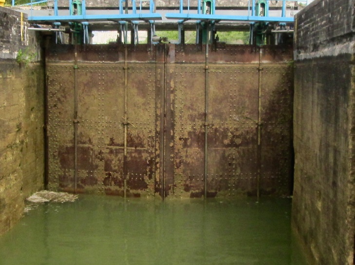All of these halts gave me a chance to take a look at the lock door make-up on this canal – and we were back to the metal doors that I had not see for some time; great big plates of metal, riveted together.