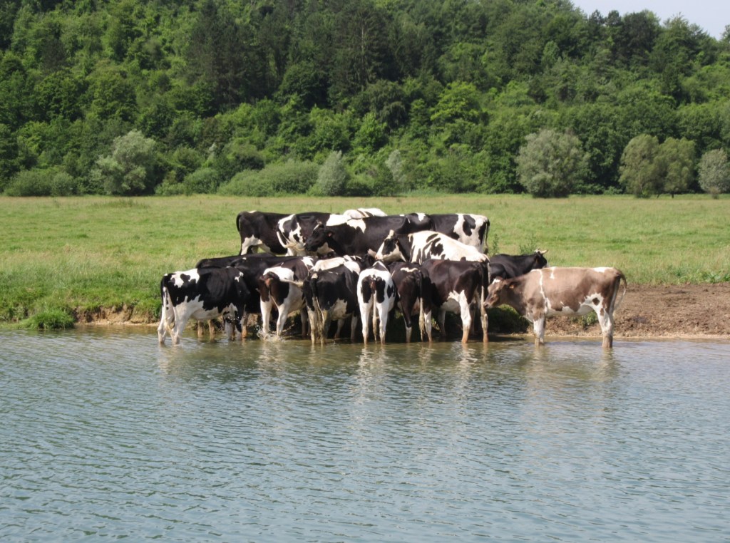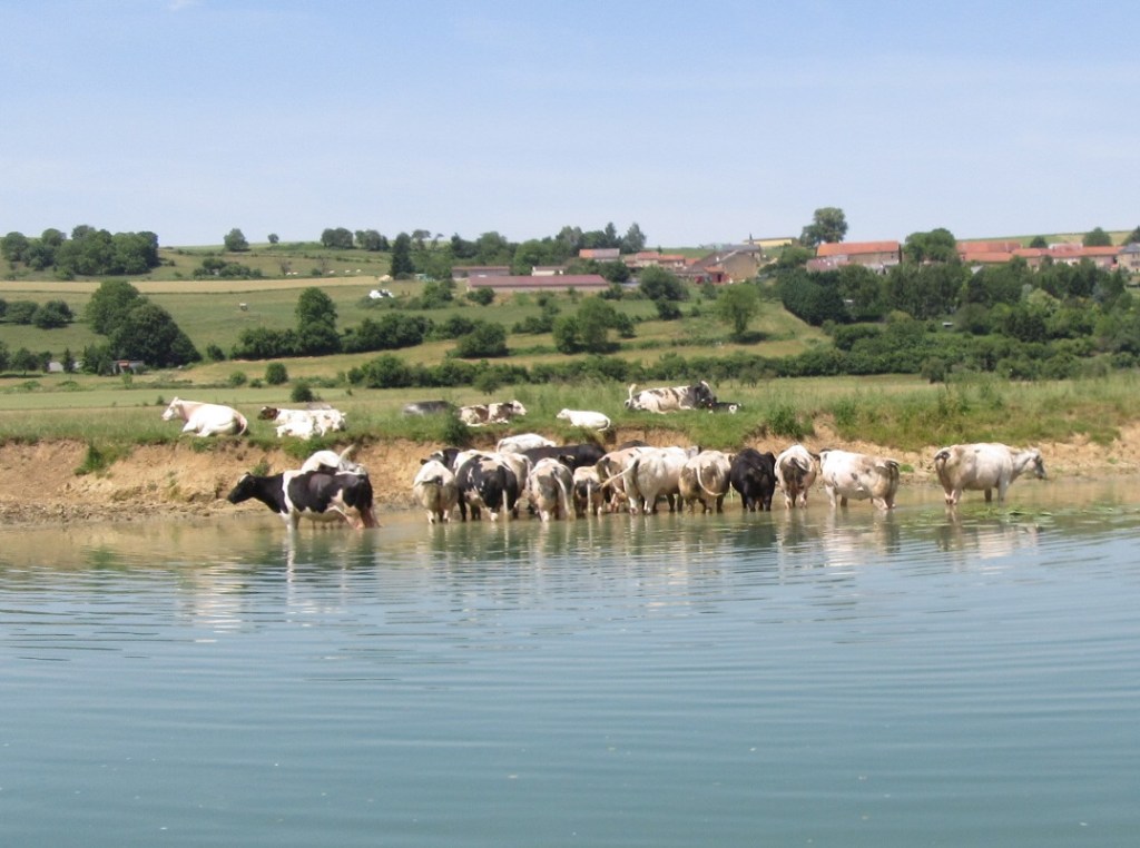 The day’s trip wound smoothly through meadows, past distant hills, and punctuated by stops at the locks. The high temperatures (34-36C) led to more than just cattle cooling off on the water!