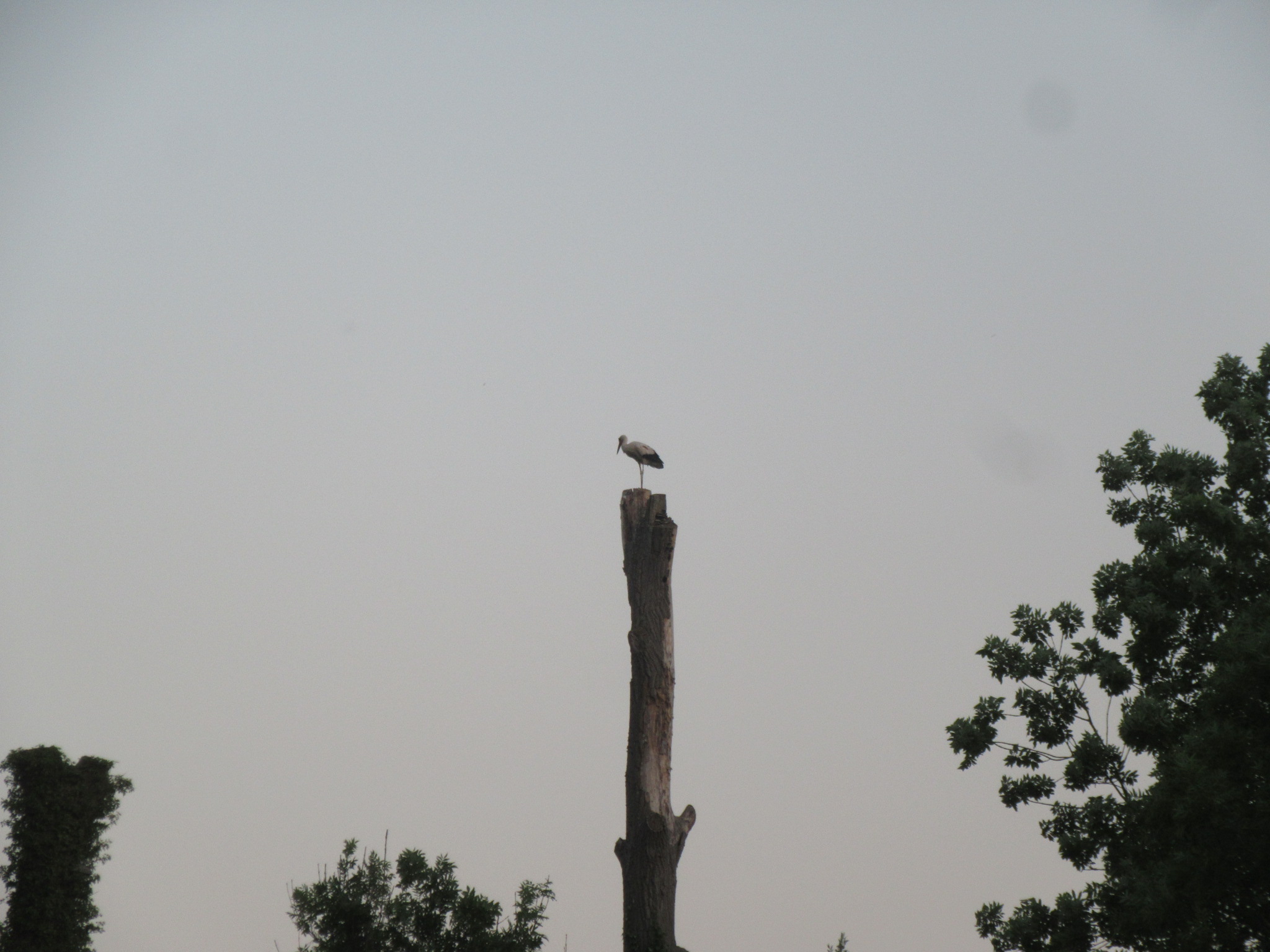 The DBA guide had an entry telling us to expect lots of kingfishers; sadly we did not see any, and in fact this year has been particularly devoid of them, but at twilight we did get a roosting stork just across the river.