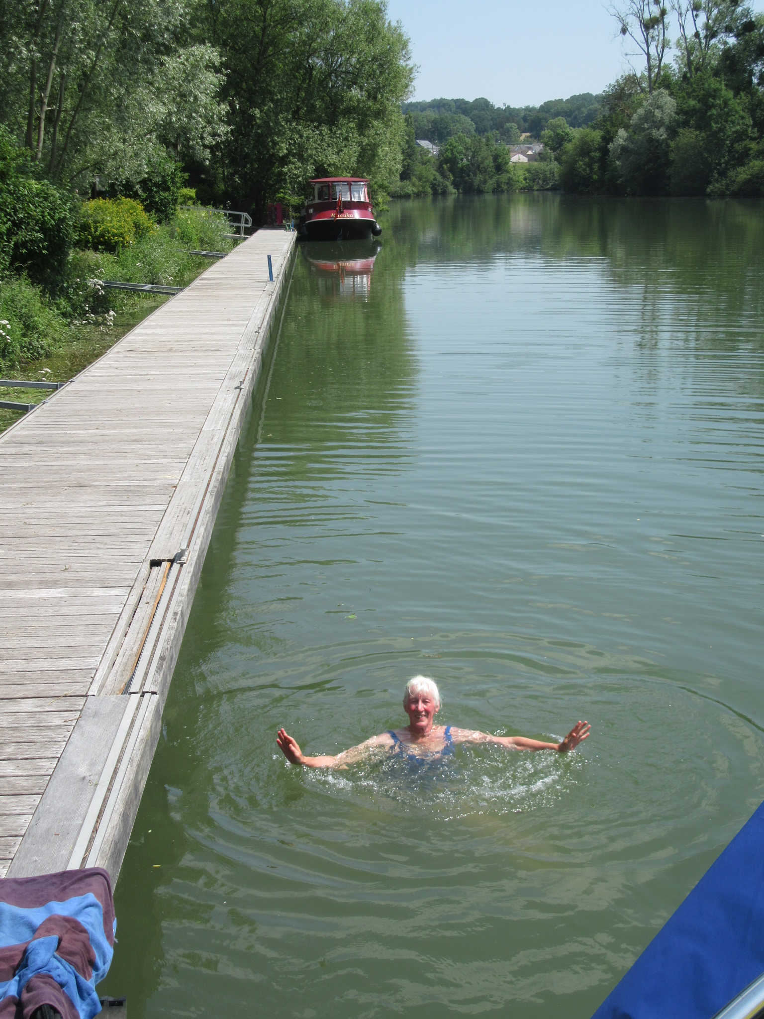 We found the excellent Lumes pontoon without any problem, immediately recognising the one other boat moored up at the other end, but before reacquainting ourselves with our Piper friends it was time to get over the sweltering heat with another swim in the marvellous Meuse.