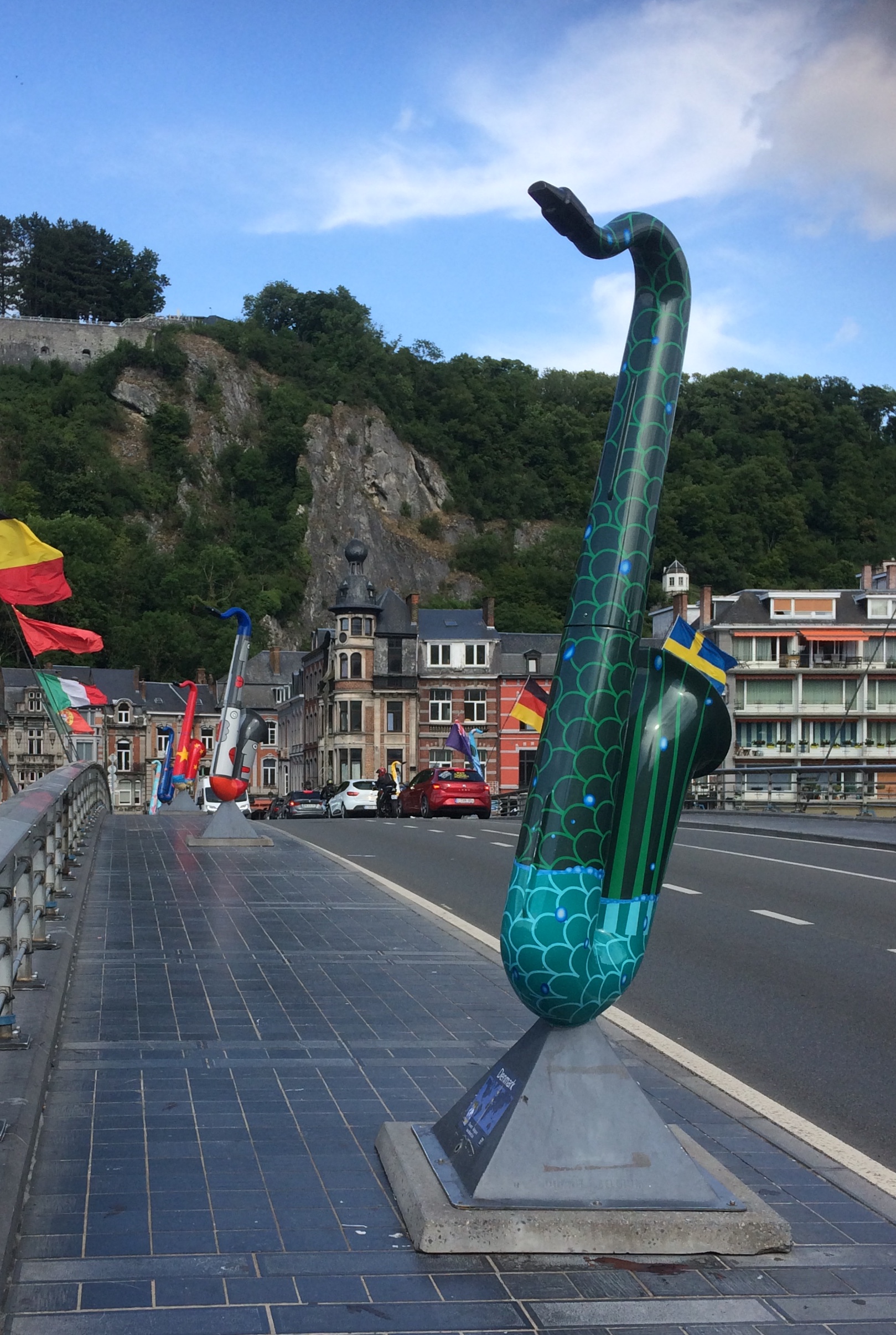 There were saxophones everywhere – madly coloured ones that somehow represented all different countries round the world, silhouettes attached to lamp posts, a huge glass one in front of the town hall, and one in the arms of Adolph Sax’s statue next to where he was born.