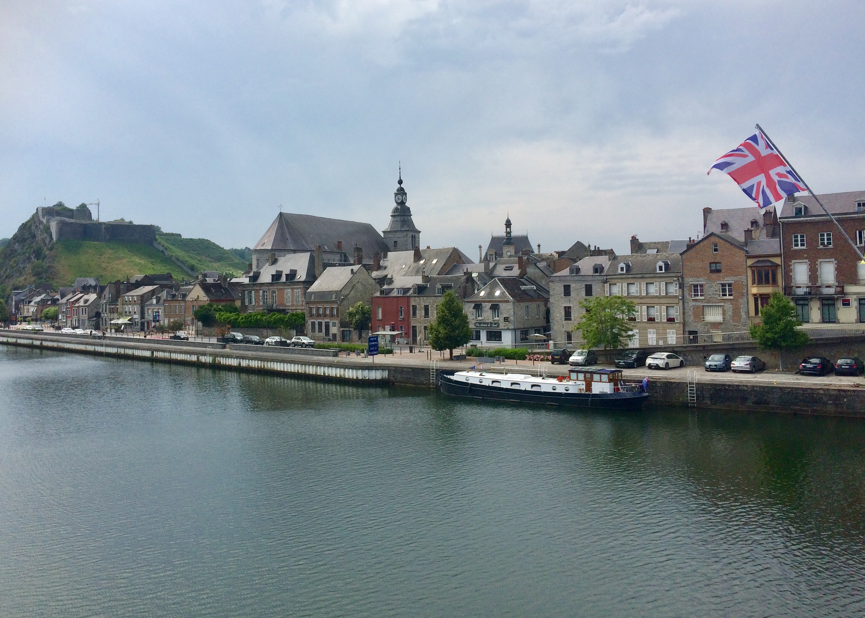 It turned out to be a long long day, mainly due to waiting at locks, so we were pleased to arrive at Dinant. We used advice from another bargee about where to moor and were pleased we had used his choice. We had the best views across the river to the Dinant citadel and church, away from the bustle of quayside bars and restaurants. And – after looking at an increasingly faded French courtesy flag for 3 or 4 years – we have a new shiny Belgian one.