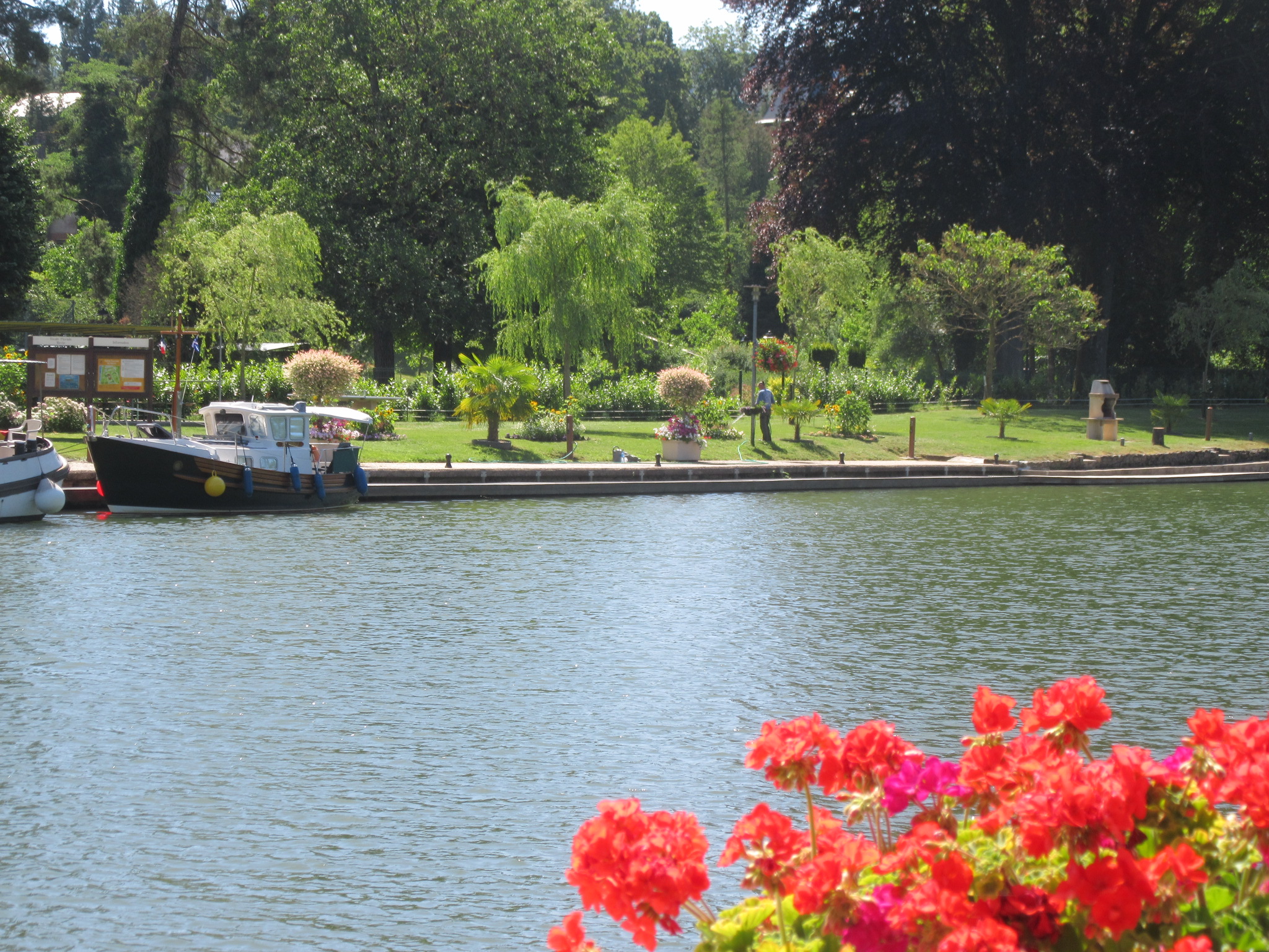 We were lucky again with a nice pontoon mooring at Chateau-Regnaut, with a neighbourly noisy frog in the evening , and inquisitive greedy geese in the morning.