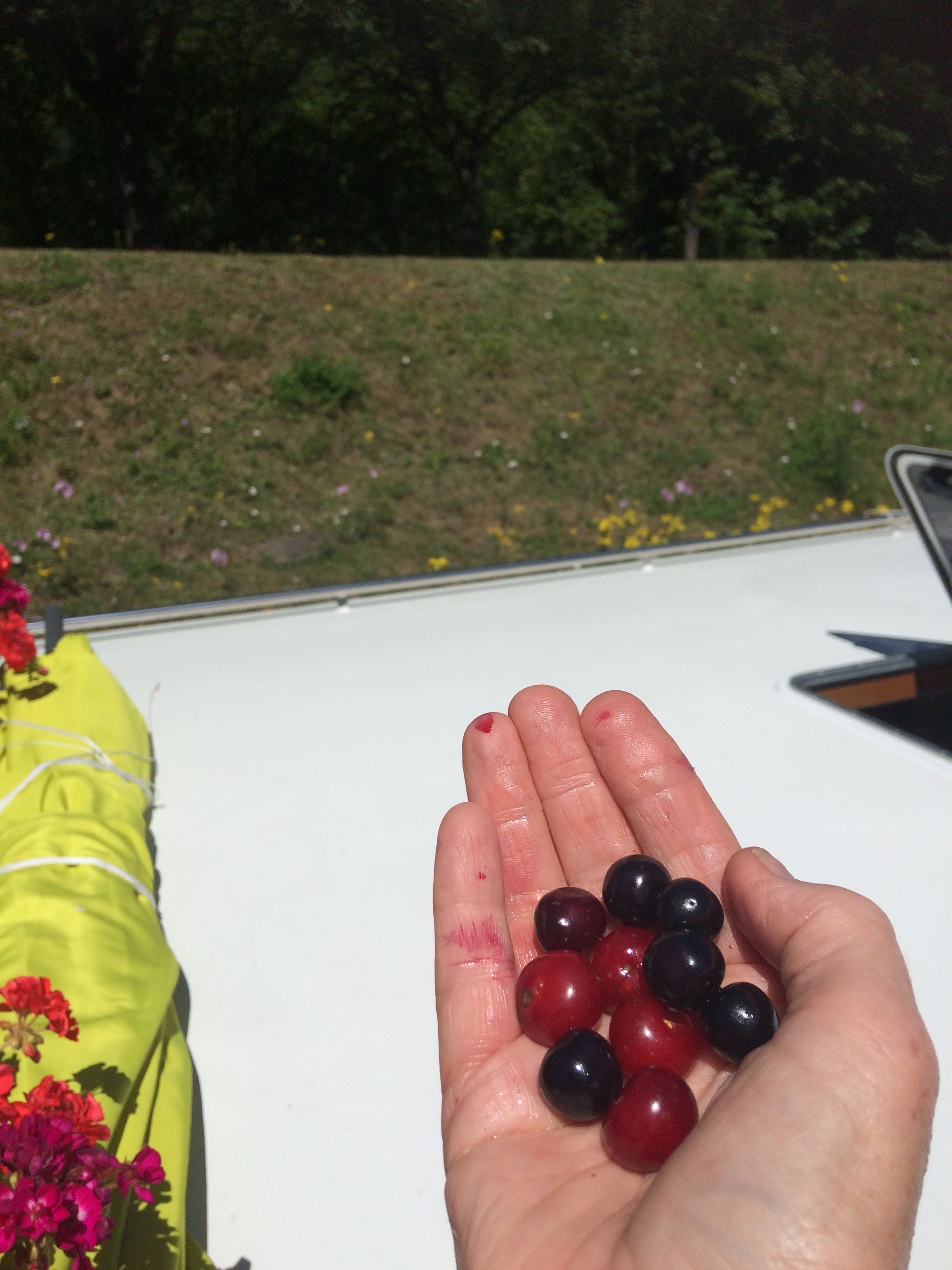 I left Captain Stu to have his siesta while I wandered off to have a swim. Should be easy enough when you are travelling on a river! But in fact I struggled to find a place where I could enter, and more importantly exit, the water. Eventually I found nice smooth stones down to the water’s edge next to the overflow from above the lock – mmmmm – cold clear bubbling water.