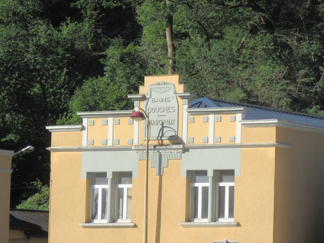 As we left Chateau-Regnaut we were starting to see the Belgian influence in the gable ends of houses, and also rather liked the very art deco municipal baths