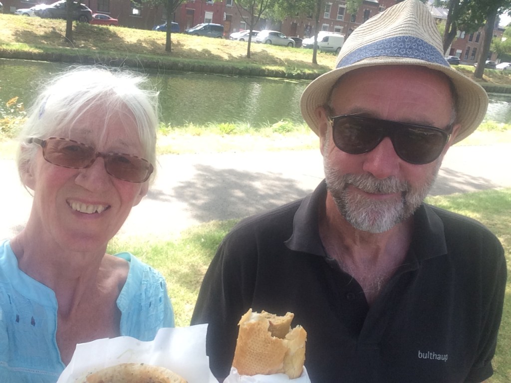 The next day, Saturday, we walked to Strépy on the other side of the canal – and discovered that it was the weekend of the local fête, all along the side of the historic canal. You want waffles? You want frites? You want good Belgian beer, or kebabs, or dried sausages, or pastries? It was all here, plus music, entertainment, and jolly people