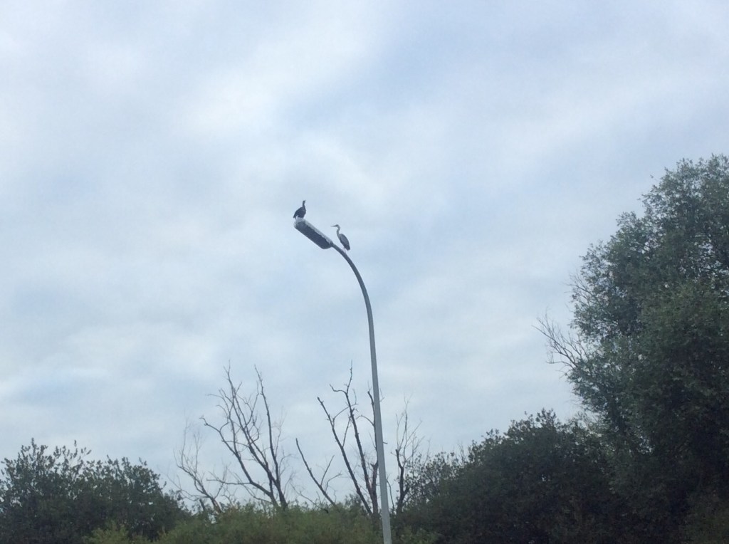 Not many up apart from the birds! This meeting between a heron and a cormorant looked conversational.