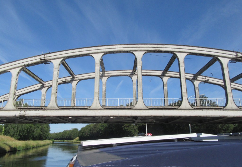 Just after this we turned onto canal 2 – the Canal de Centre. The waterway opened out wide and clear as we joined the new part of this canal, towards the boat lift. The old historic, narrower, branch of the canal is still open, where the descent of 240ft is actioned by 4 separate beautiful old boat lifts.