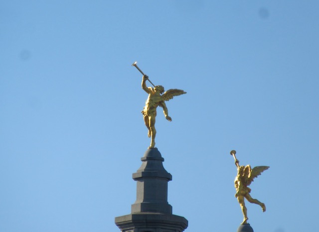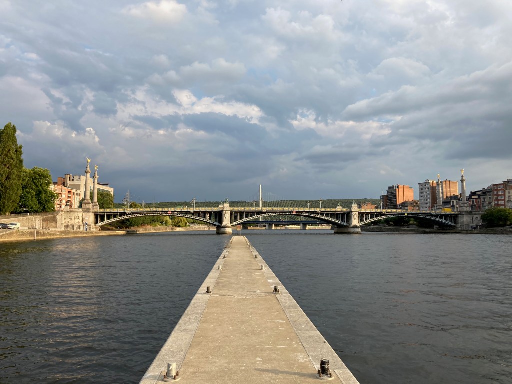Our days in Liège meant I had time to photograph the surrounding waterside quite a few times; the trumpeting cherubs are at either end of Fragnes bridge.