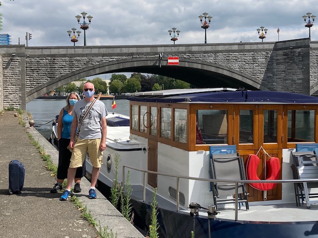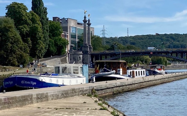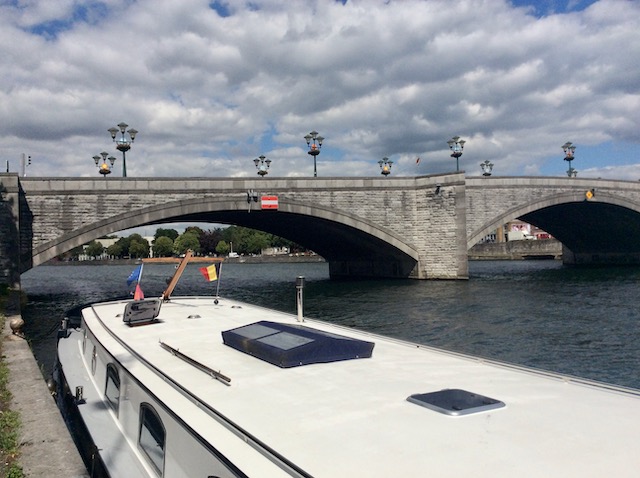 We came under the famous bridge at Liège and found the long pier where we planned to moor completely empty! So we had our choice of places to tie up.