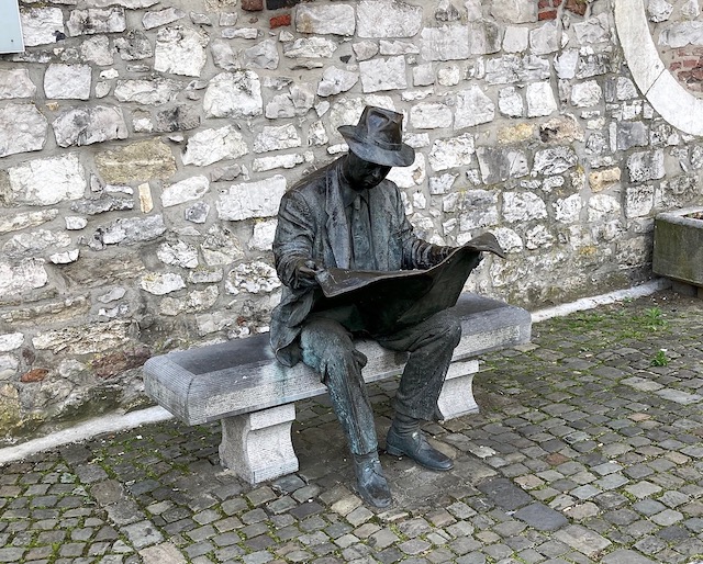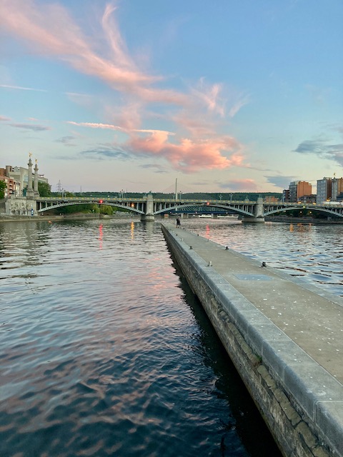We set off under the many bridges of Liège, past many wonderful buildings, and my favourite statue. Oh that I had that energy and bounce in my body now.