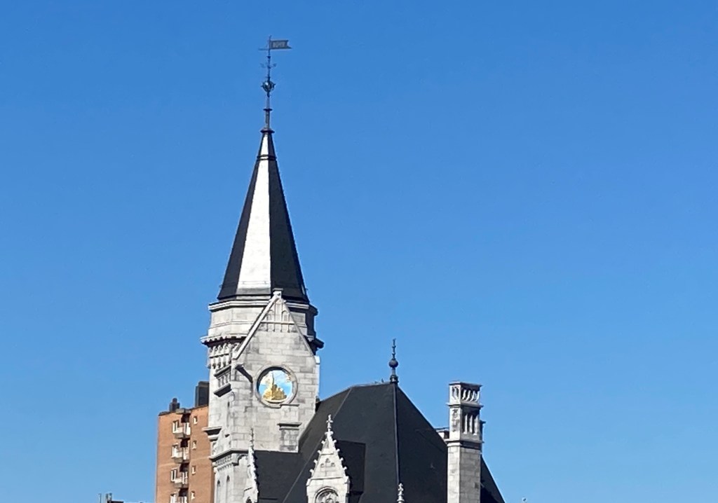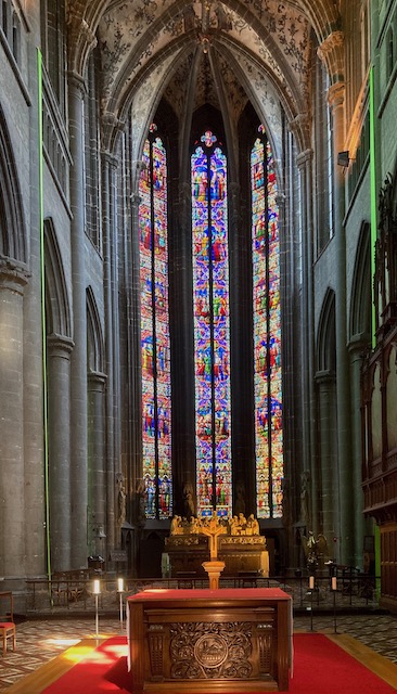 We also went top the cathedral and saw the last of thew four wonders of Huy – Li Rondia – the rose window. My photos does not do it justice, nor justice to the East window and part of a wonderful art exhibition that was there at the time.