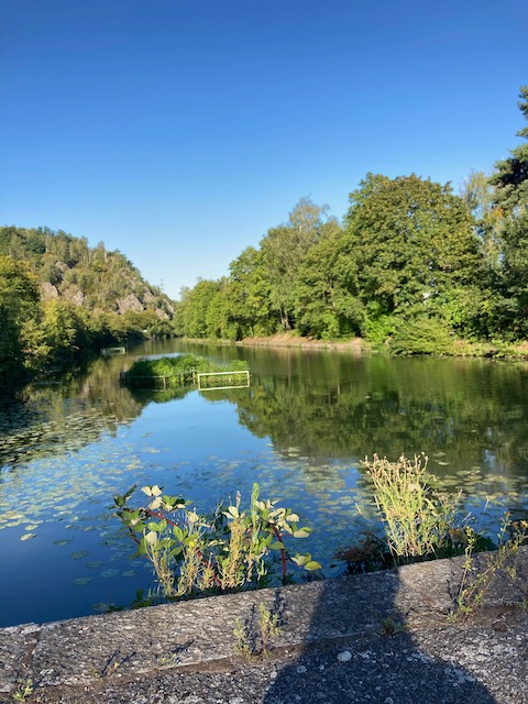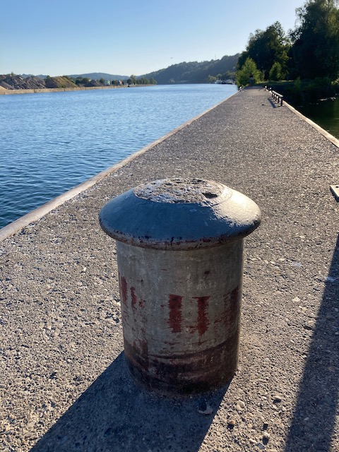 The water that floods under the central section of the pier made this a surprisingly bumpy mooring each time a commercial barge went by – and even more so when two passed each other beside us! This is warning for those who follow us; moor towards one end or the other of the pier, avoiding the section where you can see the water flows beneath! We moved after a couple of nights as the commercial boats move from about 5.30am until about 10pm!