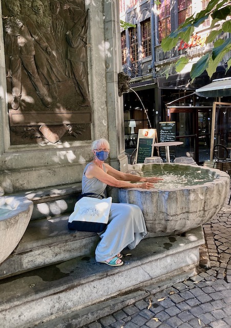 Then we went for what is, apparently, the top tourist attraction in Liège; this was not one for a hot hot day, so I cooled down by a fountain first.
