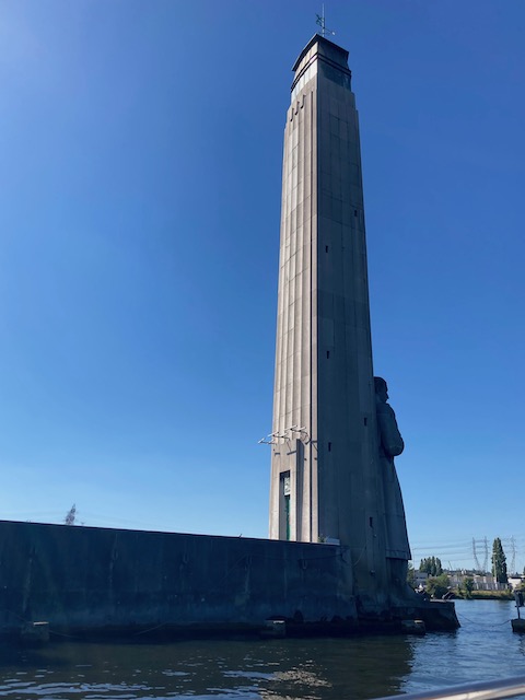 Before long we met the Albertkanaal, marked at its beginning with the HUGE Albert monument, sadly in the shade on our approach.