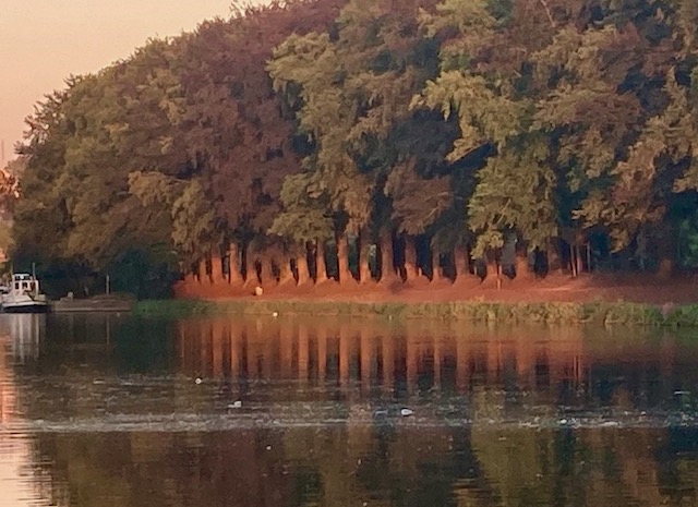 Liège is the third largest city in Belgium and the old quarter is full of ancient churches, squares and lanes – and also full of the bustle and hustle of a modern centre with shopping arcades and busy streets. But our mooring was effectively on a large island, mostly given over to a pleasant park popular with the Liègoise. (Apologies again – I just can’t keep out of water!)
