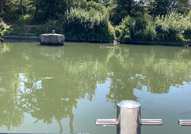 We chose to moor up for the night above the next lock, just a kilometre or so further along. It was a pleasantly quiet place, with a metal grid pontoon holding a surprise.
