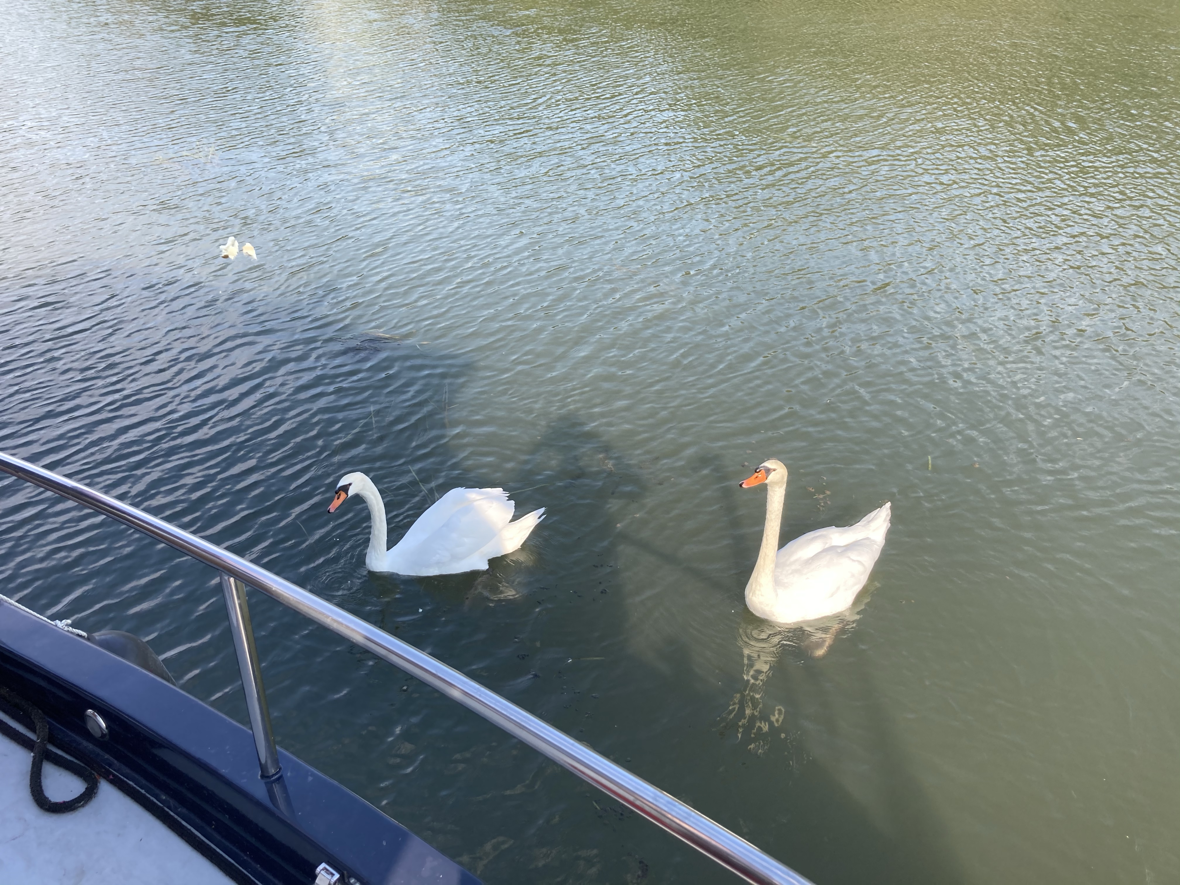 The temperature was still way up in the high 30s during our time at Eisden. The visiting swans looked so cool I took a leaf from their book.