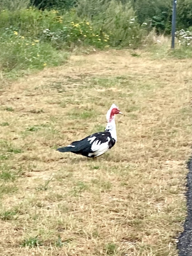 After the rain I took a quick walk round the village. Then I want to nice older buildings amongst the more modern homes. And also a welcoming Muscovy duck!