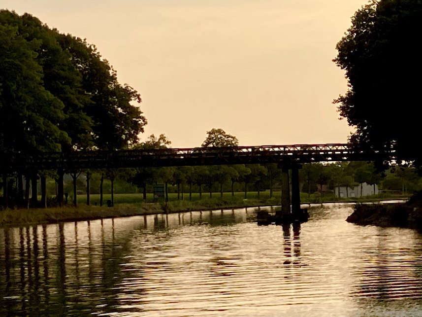 We liked this mooring, just tucked into the top of the canal. Passing working barges were moving very slowly because if the bridge and we were hardly stirred, let alone shaken.