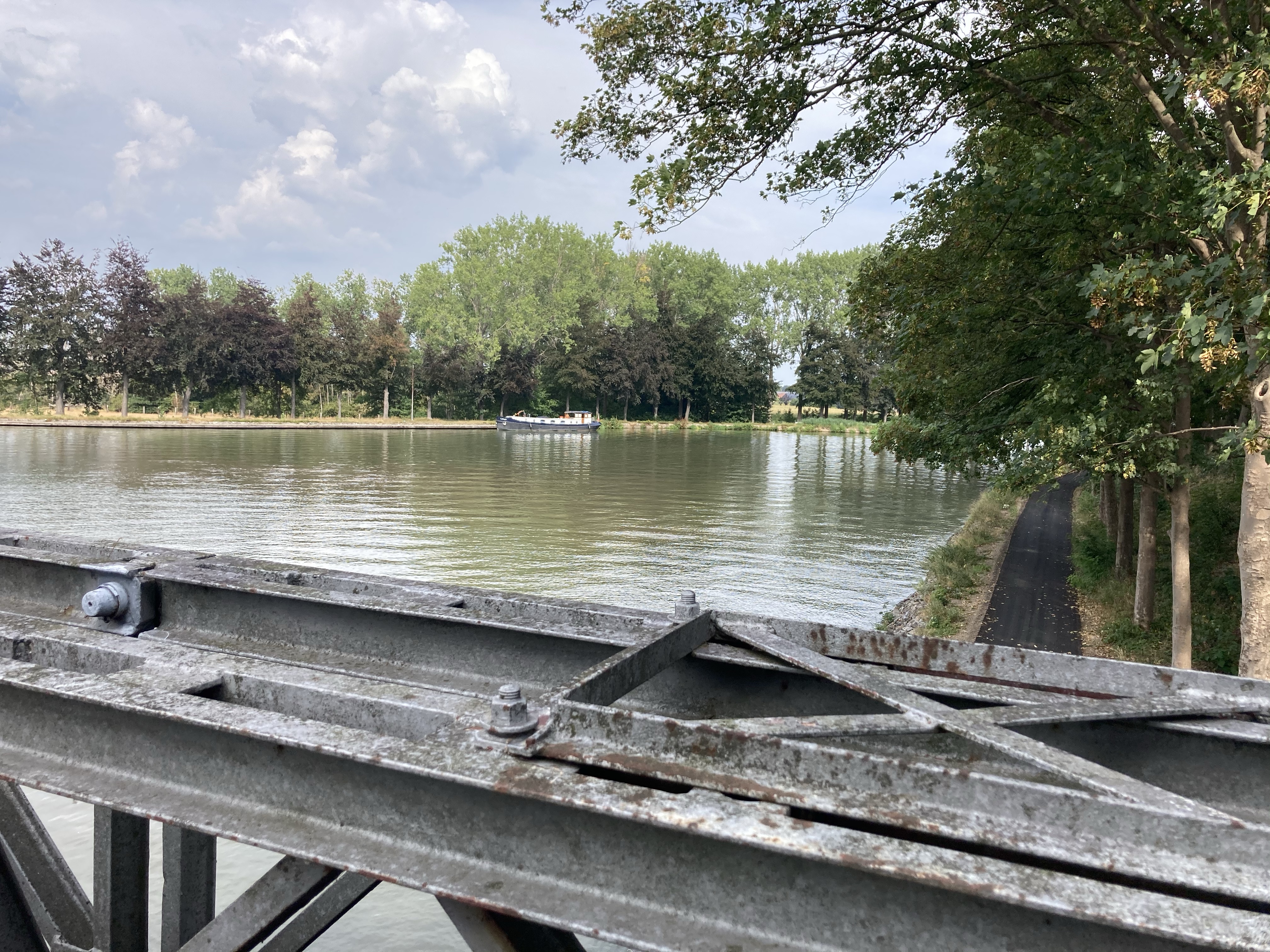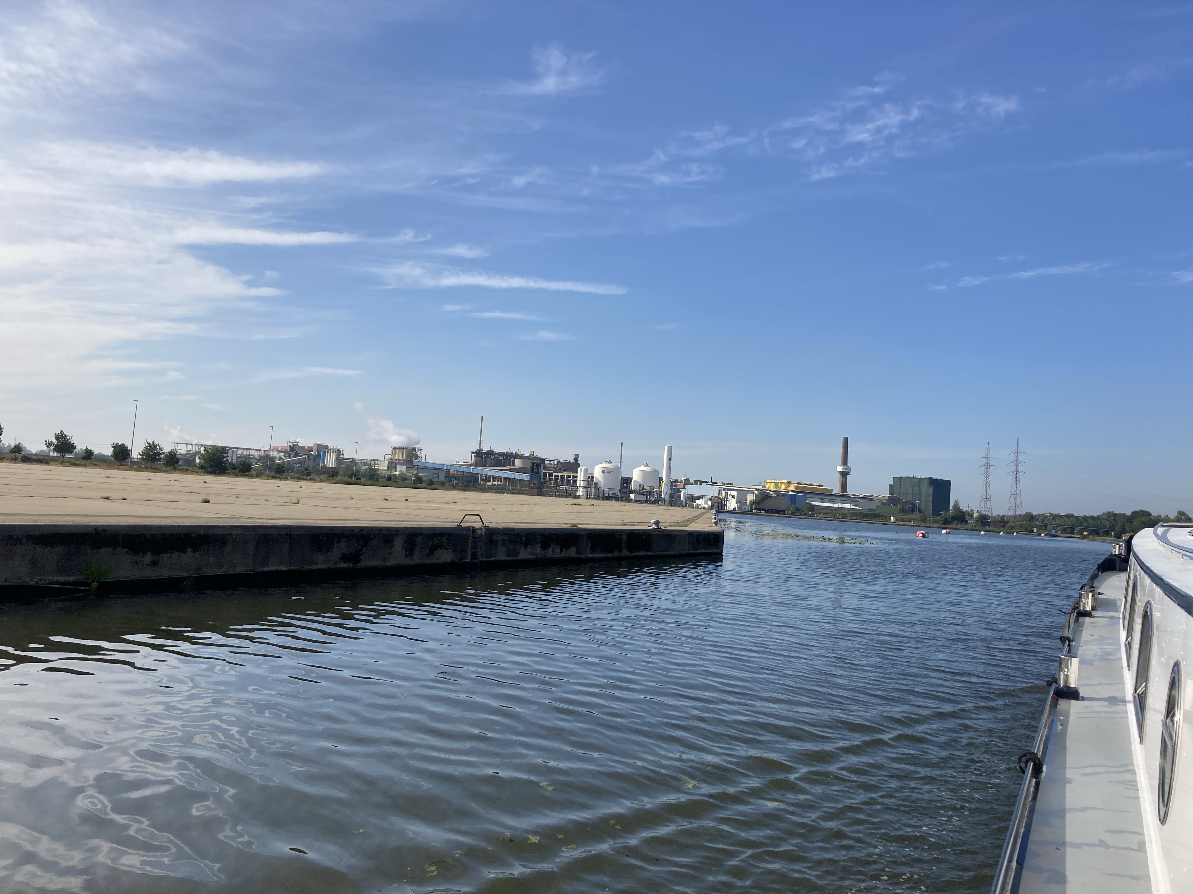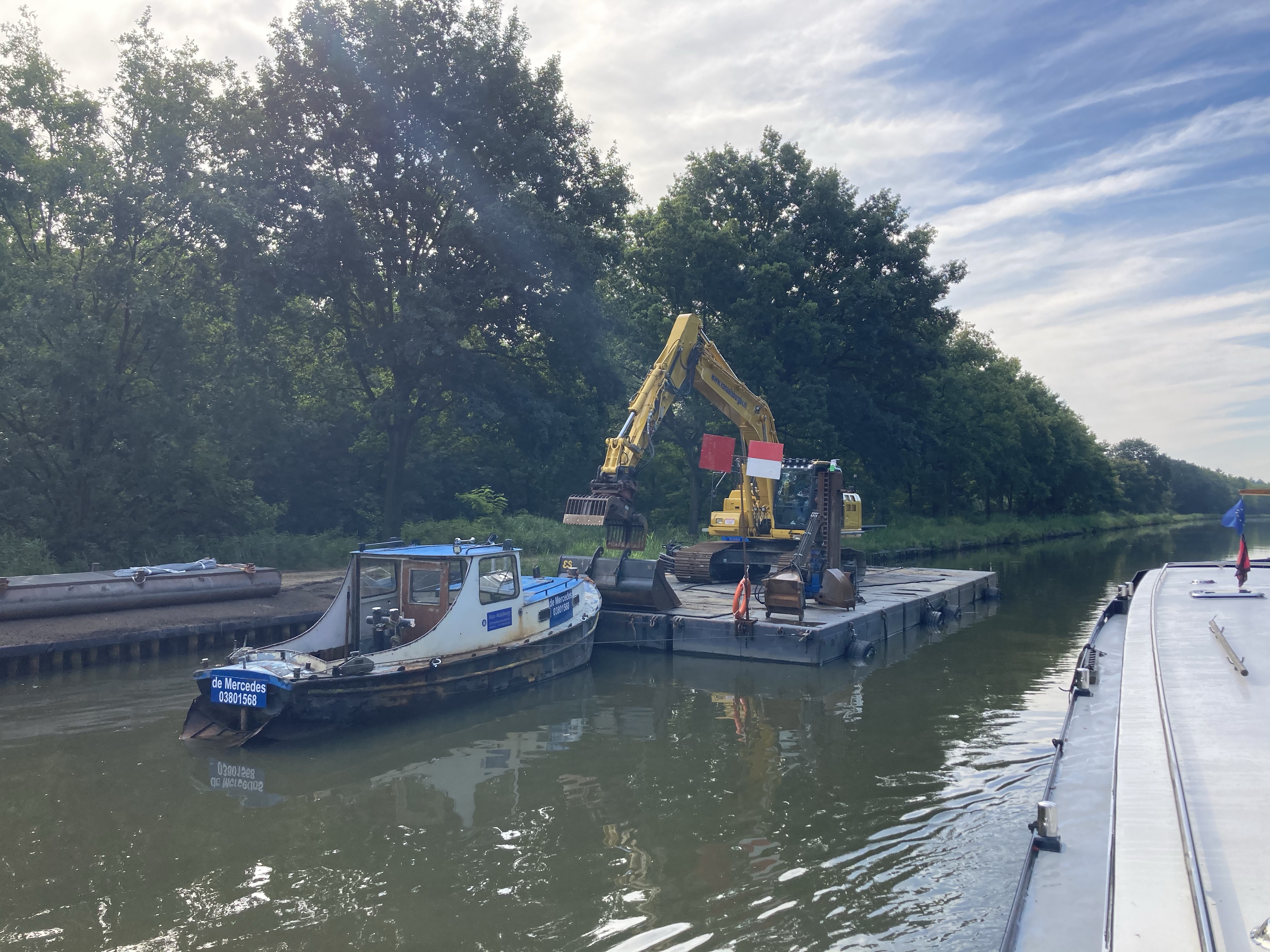 Up we came through Visé lock and back onto the Albert Kanaal, with El Perro Negro not far behind. It was a boiling hot day – well up to 36C – and part of a 10 day long heatwave. I never thought that cruising in Belgium would be as hot as the Canal du Midi!