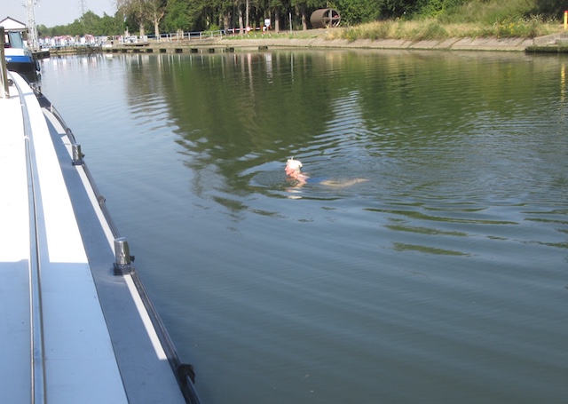 And who else was swimming, although not nervously? I did have a purpose this time, to try to look at the bow thruster which might have stuff caught in it – but I really needed a mask for that, and anyway it all worked fine next time we used it.