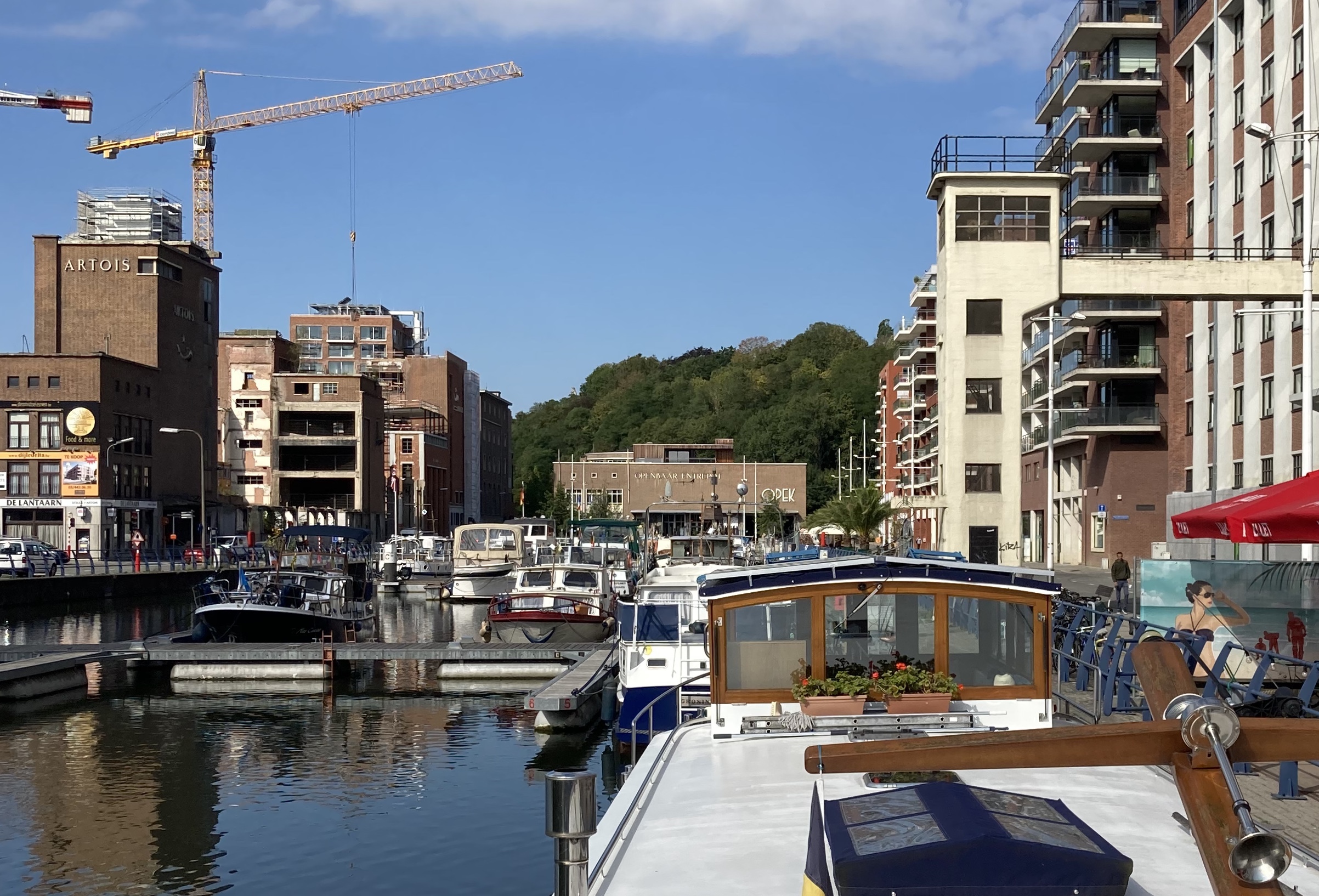 On the way back to the boat we found, first, a relatively quiet bar, and secondly an Indian restaurant – not exactly Belgian, but very good. Then back to our mooring in the basin at the end of the canal, with the old Stella Artois brewery being dismantled astern of us.