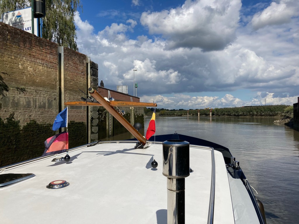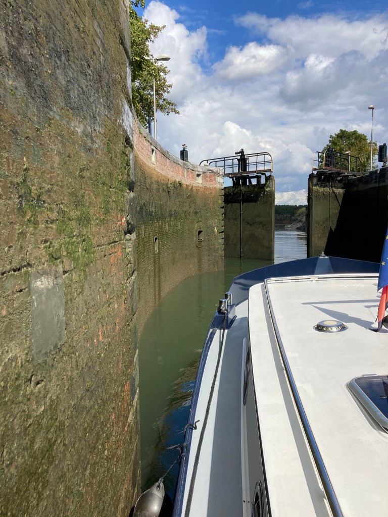 We were quickly through the lock – at high tide a drop of only 1m – and about to join the Zeeschelde.