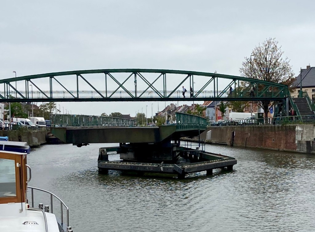 The first obstacle is a pedestrian/cyclists bridge that opens in quite an unusual fashion – very slowly too.