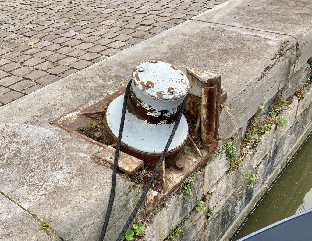 Then we came to Tollhuissluis – a lock that was due to close a few days later but we sneaked through beforehand. It’s the first time I have been in a lock with a tram running alongside I think (yes it is there through the trees). And the bollards were set at a deliberate angle that I have not seen before either.