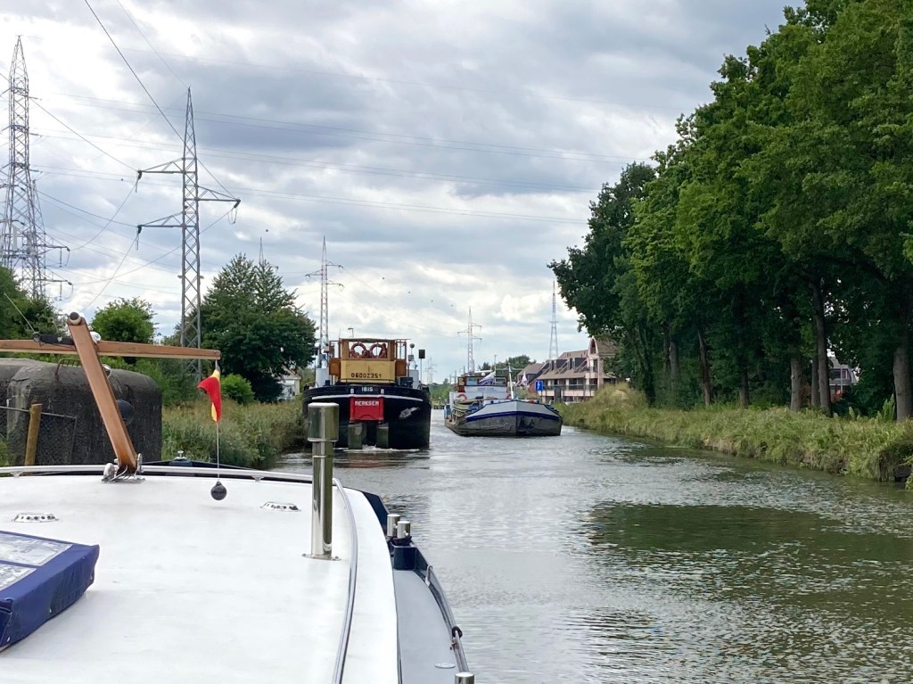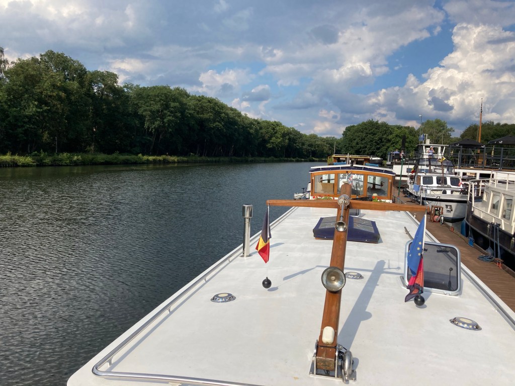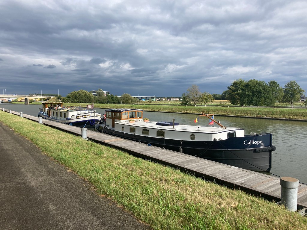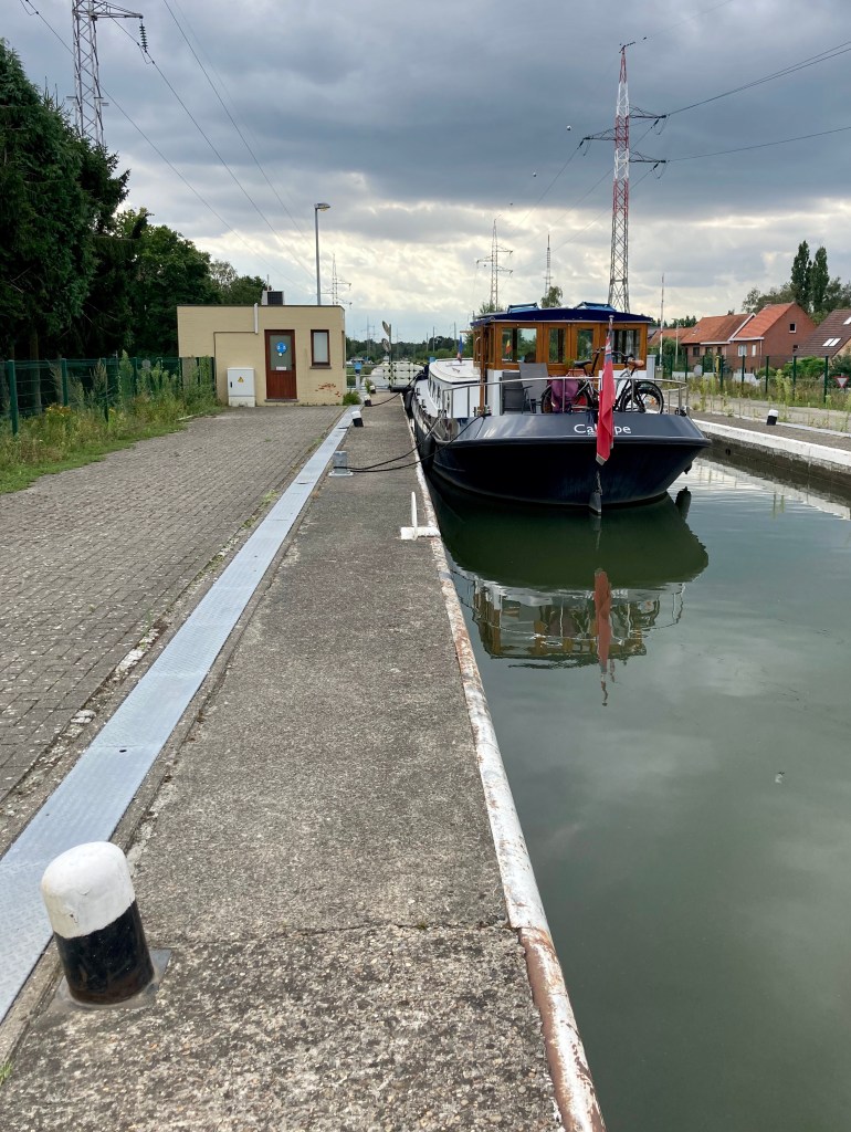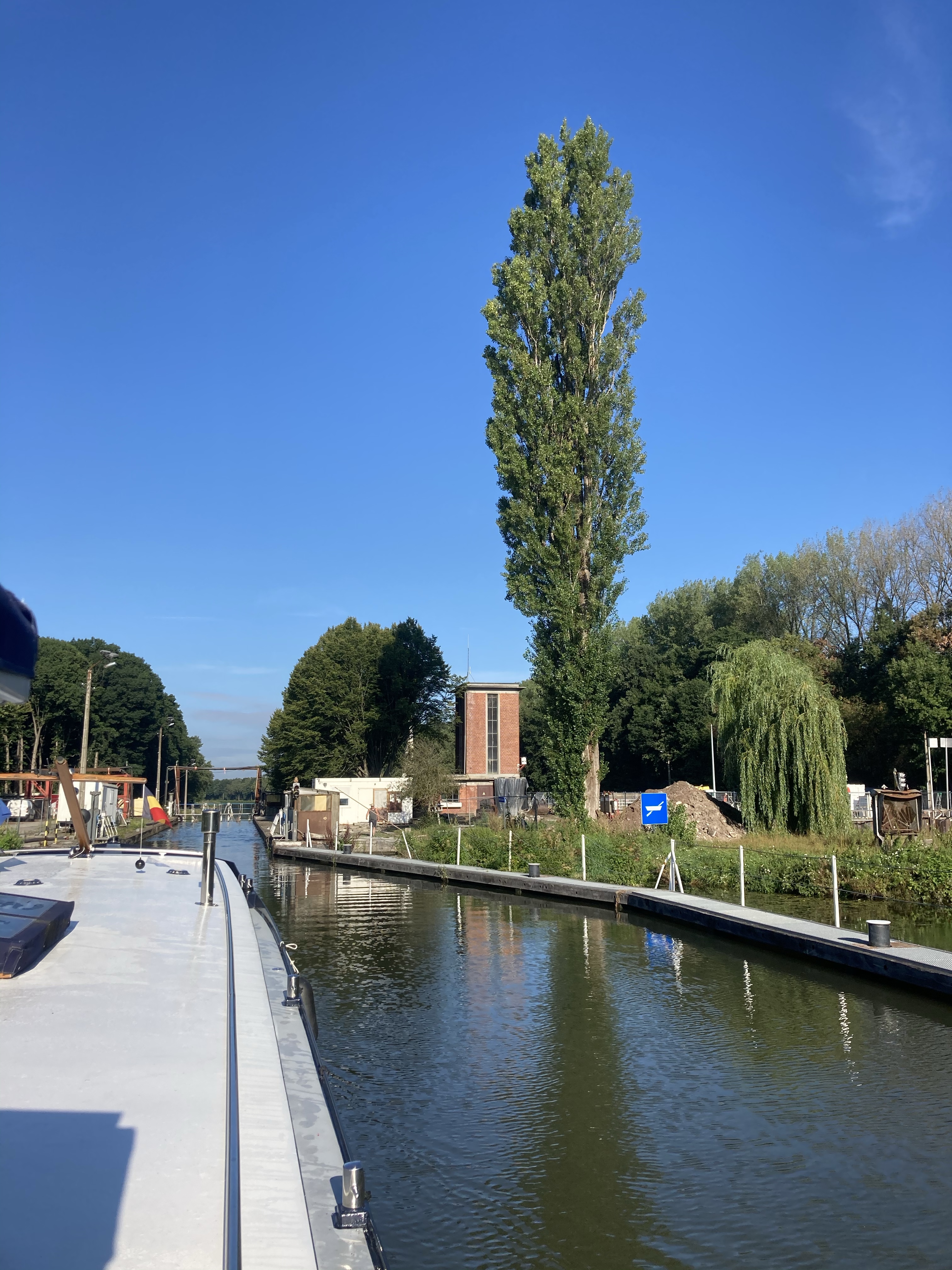 We were ok about this. It was easy to be flexible about not mooring at Schoten and set off onto the HUGE Albert Canal. We have been up and down the Rhone, on the tidal Thames, the Canal du Nord. So although it’s not our favourite kind of cruising we were up for the short Albert Canal challenge until we turned off it again.