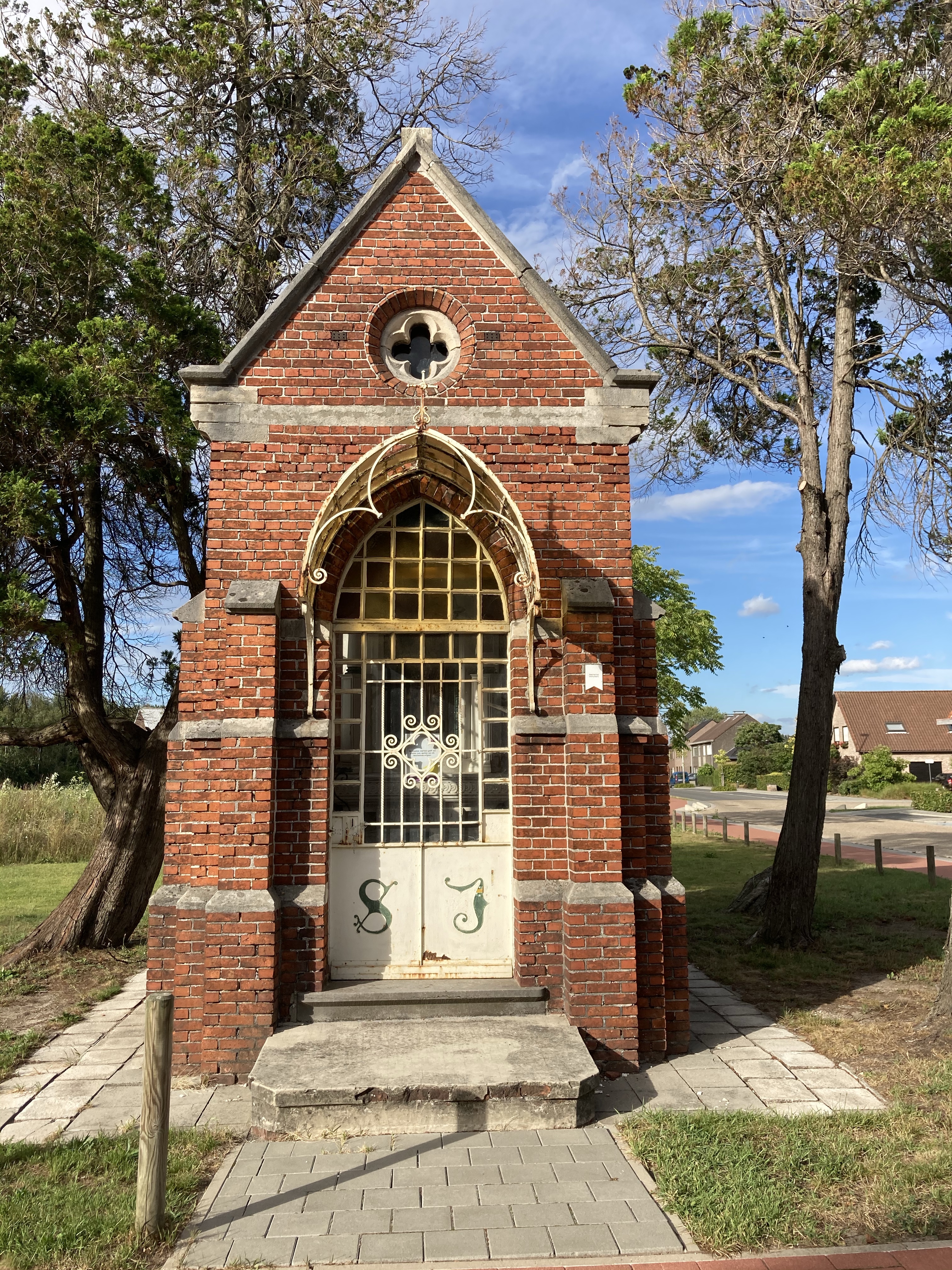 Most old buildings have gone, presumably during the war, but two shrines remain. There is also a hidden blue lake in a sandy wood, which I am guessing was a originally a pit and source of sand for the brickworks.