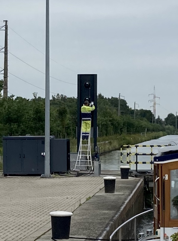 We saw plenty more evidence of the works on the locks – quite sad at Sluis 7 where our gentle veteran lock keeper, who had cycled down from Sluis 6, was in conversation with the three young engineers busy with the modernisation that would put him out of a job.