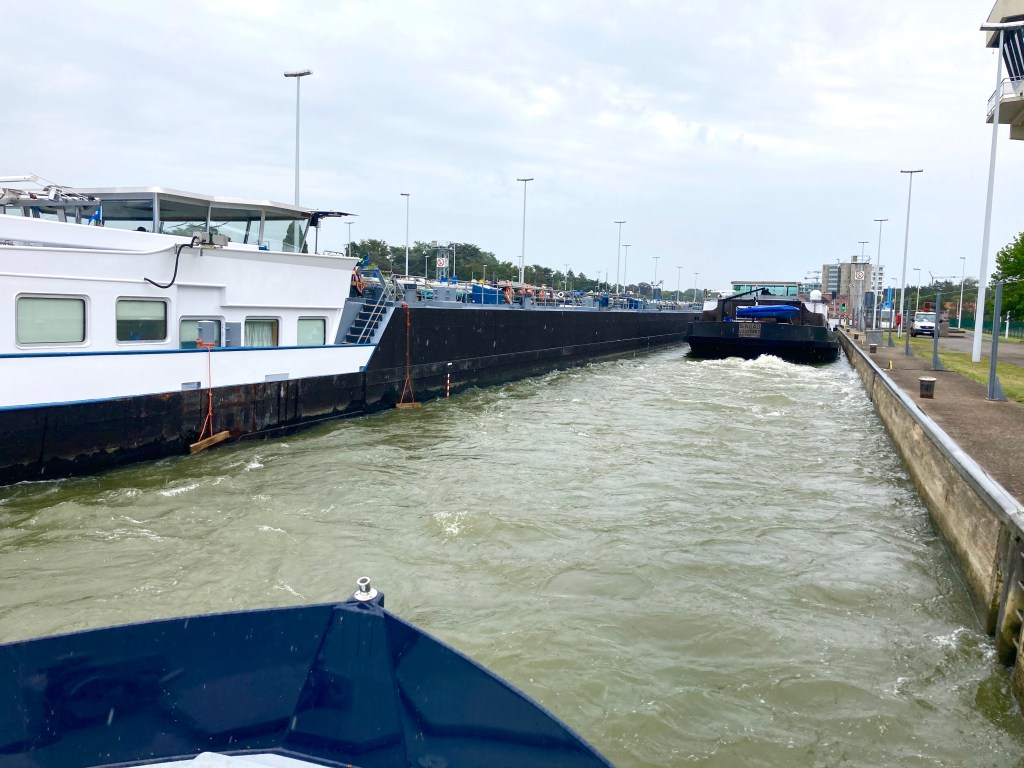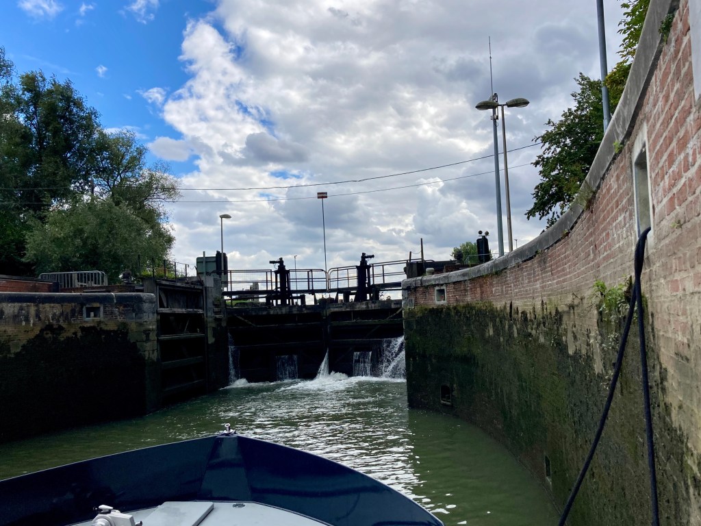 After a good nights sleep it was our turn to proceed down the Netecanal, through Duffel lock and onto the tidal River. The lock has double doors each end to cope with the tidal changes.