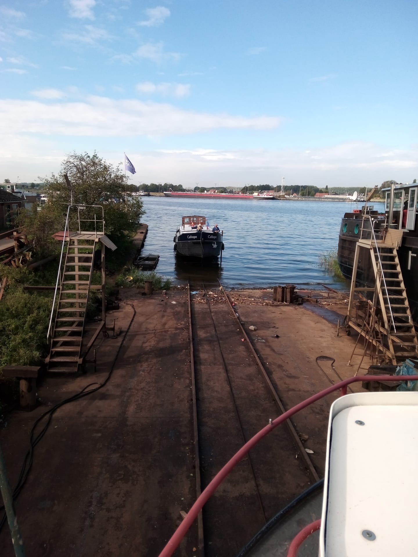 Then began a few days of waiting our turn in a shipyard busy getting commercial barges back out to work. The yard is full of photographic opportunities!