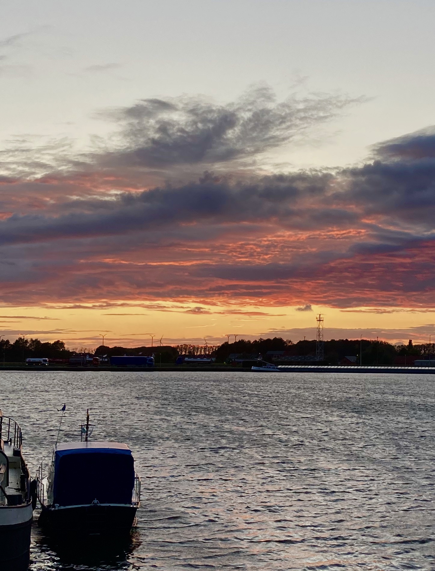 As we left the marina at Spanjeveer dawn was breaking on a lovely late September day. We were on our way to have the hull pressure washed and repainted – part of the five yearly maintenance programme.