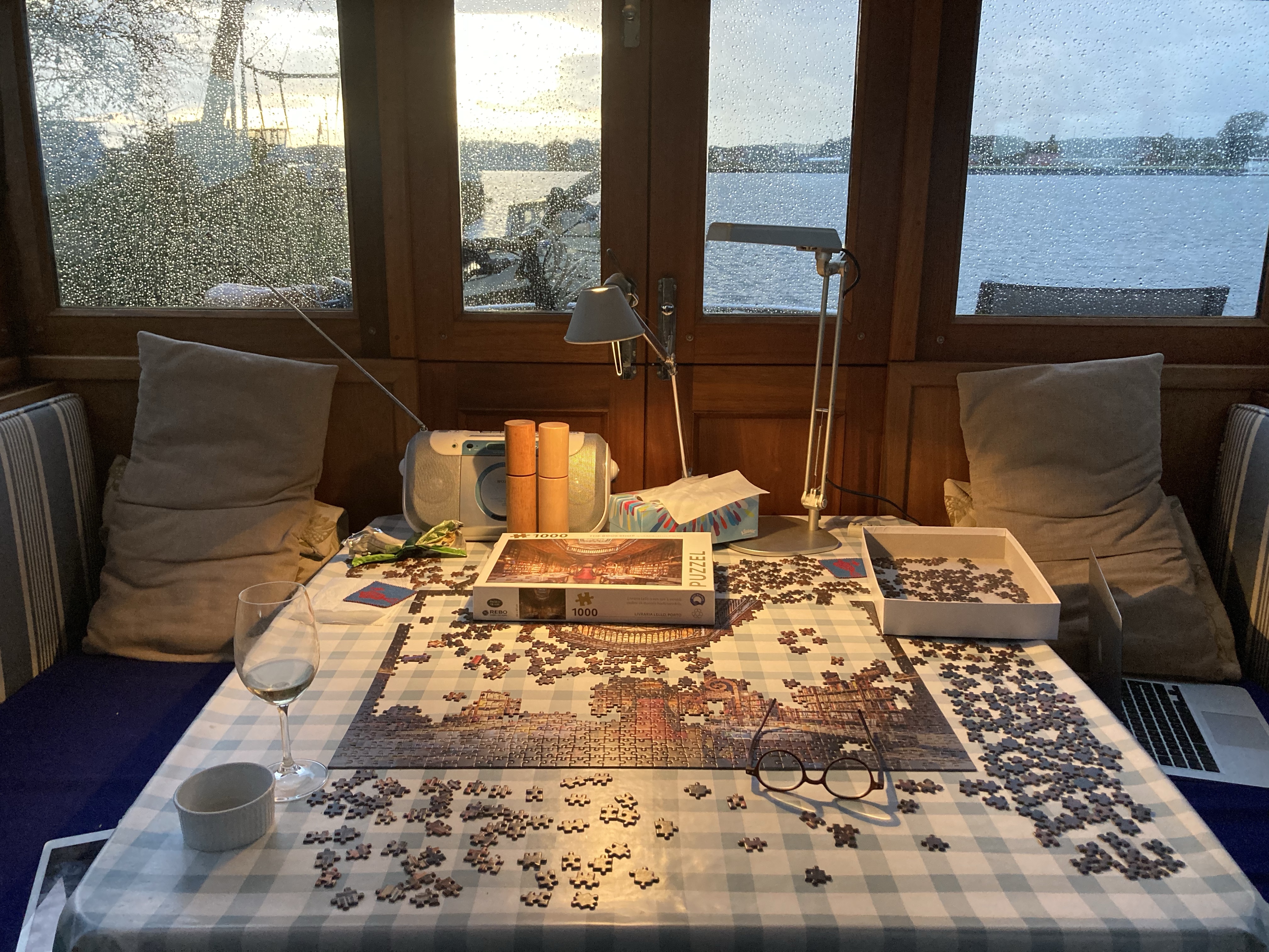 The jigsaw too was making progress – which would be finished first, the barge or the puzzle?