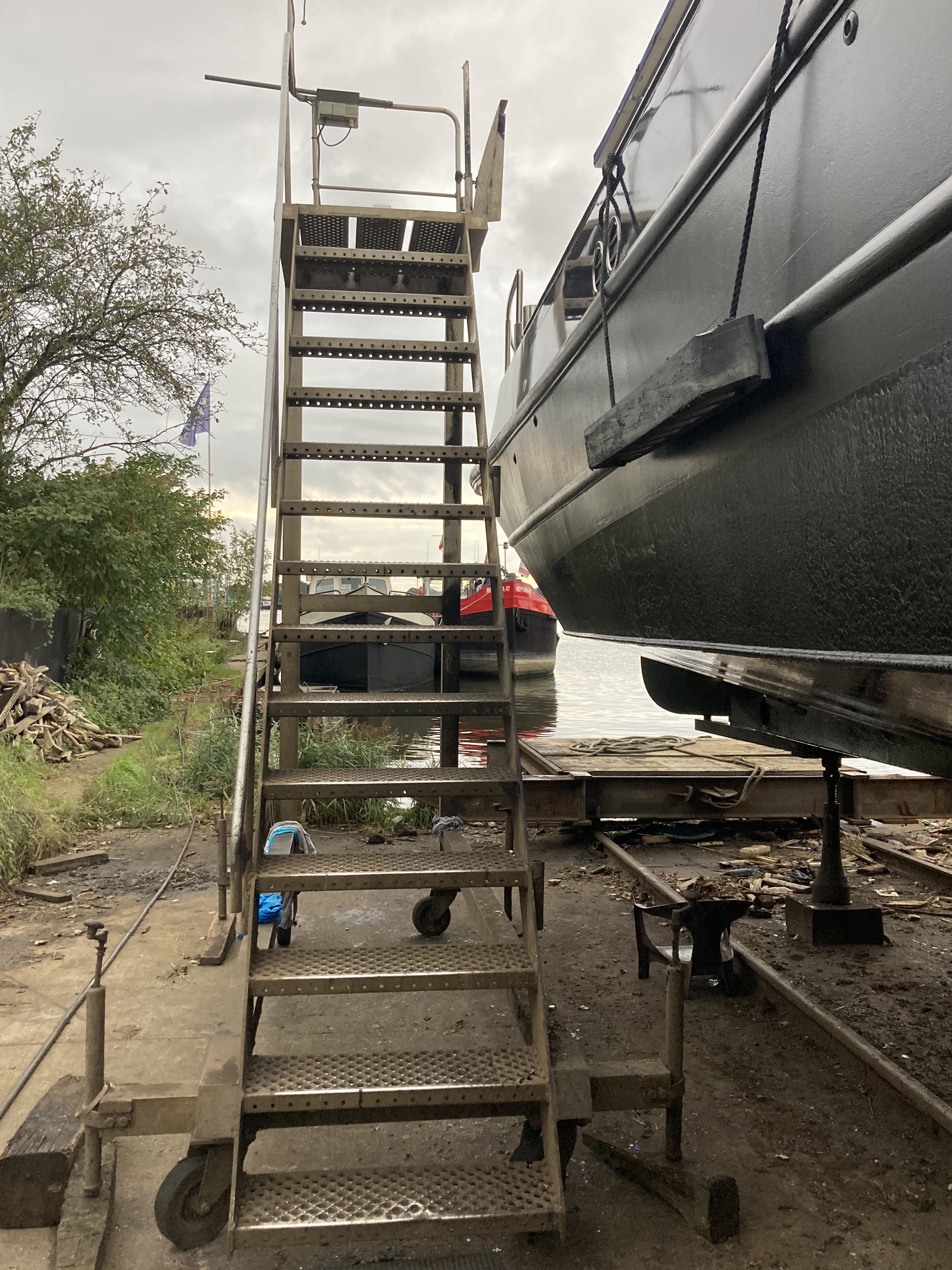 Before too long we were pulled out of the water and placed behind our friend Peter’s boat on the slipway and chocked up for our stay.